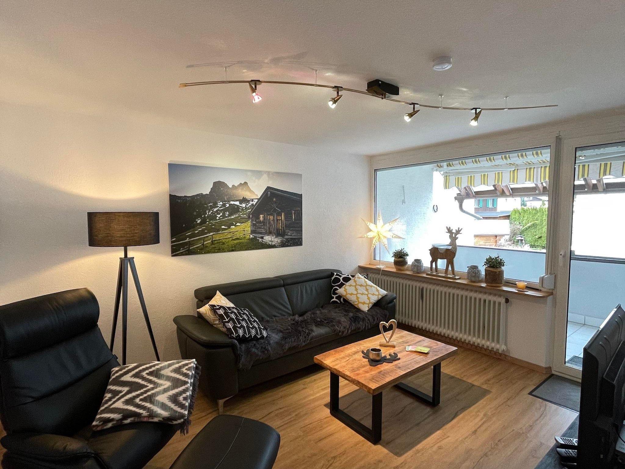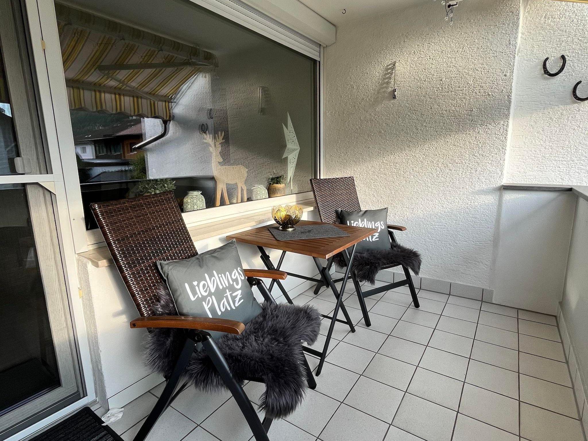 Sie besteht aus einem separaten Schlafzimmer, Wohnzimmer mit gemütlicher Leder Couch und einem Relaxsessel, einer Küche mit großem Tisch und Eckbank, einem Bad mit einer ebenerdigen geräumigen Dusche, WC, inkl. Fußbodenheizung, sowie einem wettergeschütztem Balkon (Loggia) mit Sonnenmarkise und mit Bergblick für gemütliche Stunden auch noch am Abend.