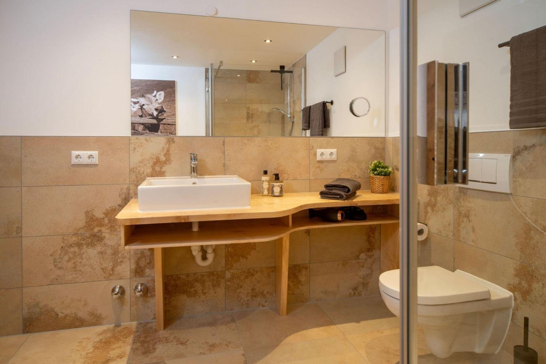 Im Vorderhaus ist eine Hundedusche für Vierbeiner installiert. In nächster Nähe befinden sich tolle Spazierwege und zum Haus gehört auch ein Hang mit großer Wiese.