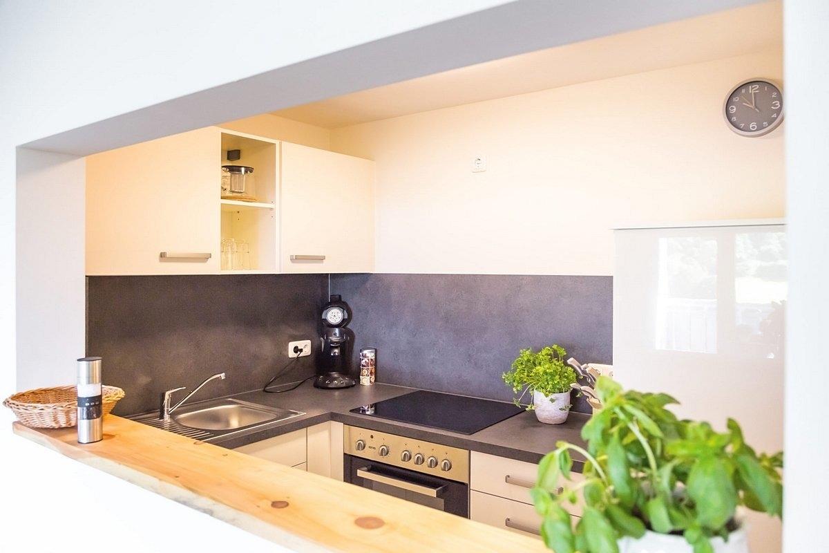 • Kaffee-Maschine, Wasserkocher, Backofen, separate Küche