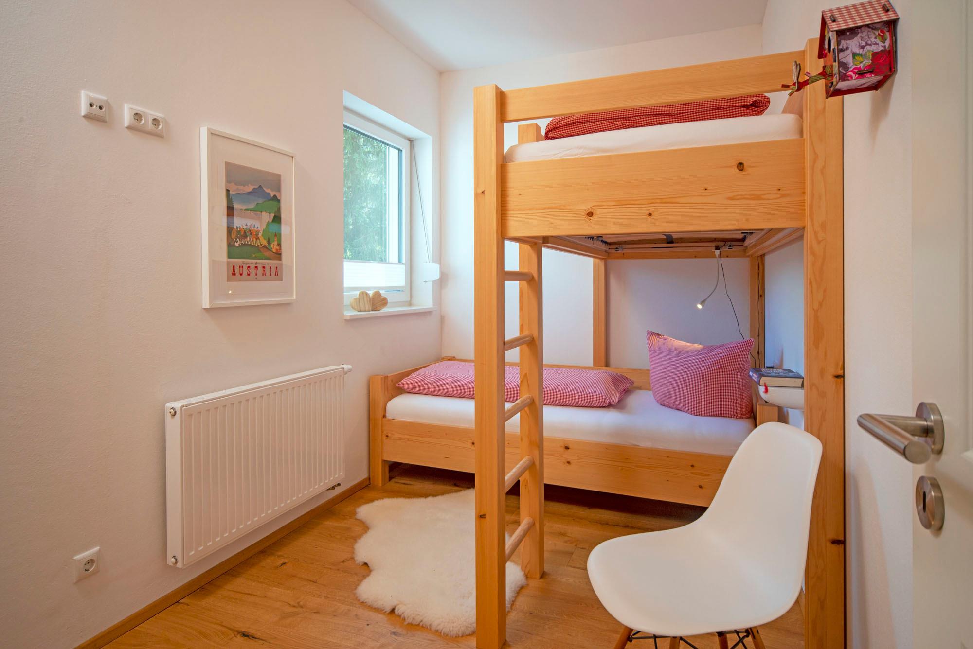 Ein Ferien-Wohn-Traum der Extraklasse, der sich über 3 Ebenen erstreckt. Edle Zirbenholzmöbel sorgen für wohltuenden Zirbenholzduft - für den Wohlfühlfaktor der besonderen Art. Ein Doppelschlafzimmer und ein Kinderzimmer mit Etagenbett sowie 2 Badezimmer mit ebenerdiger Dusche und WC bieten jede Menge Komfort. In der großen Wohnküche werden Sie in entspannter Atmosphäre am großen Esstisch gemütlich zusammensitzen. Im Wohnzimmer sorgt der Echtholz-Fußboden für Behaglichkeit, den interessanten Gegenpol bilden die Design-Möbel, wie das Longchair-Sofa und die Sessel. Für Unterhaltung sorgt ein Smart-TV, ein DVD-Player, eine Stereo-Anlage sowie eine Bücher- und Spieleauswahl. Zum Relaxen steht im Haus eine Sauna mit kleinem Ruheraum zur Verfügung.