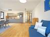heller und offener Wohn-/Essbereich mit integrierter Küche und Zugang zur Terrasse , Schlafcouch Boxspring 160x200