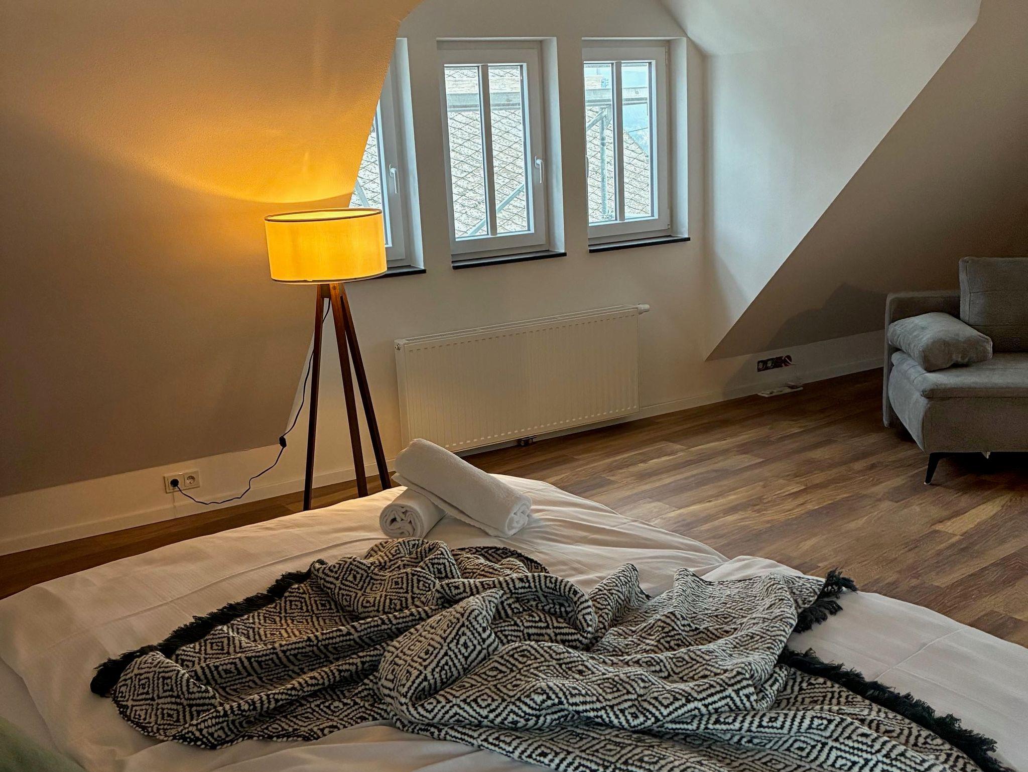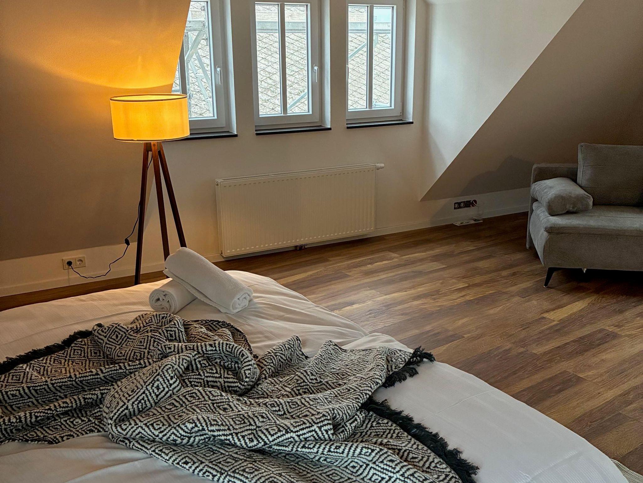 Für Gäste, die Weite und spektakuläre Ausblicke lieben, ist unsere Galeriewohnung die ideale Wahl. Mit großzügigen 160 m² bietet sie viel Raum und Freiheit. Sie erreichen diese exklusive Wohnung über einen charmanten Balkon auf der Rückseite des Hauses, der Sie direkt in die erste Etage führt. Im Inneren erwarten Sie moderne Schlafzimmer, eine brandneue Küche und ein großes, lichtdurchflutetes Bad. Von gleich zwei Balkonen genießen Sie einen atemberaubenden Fernblick auf die Moselschleife – perfekt für entspannte Morgenstunden oder laue Abende.