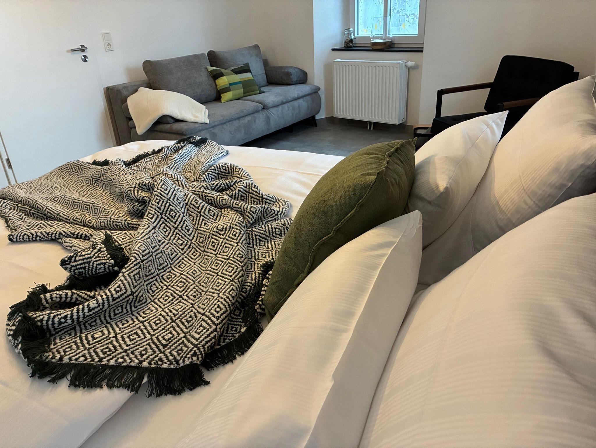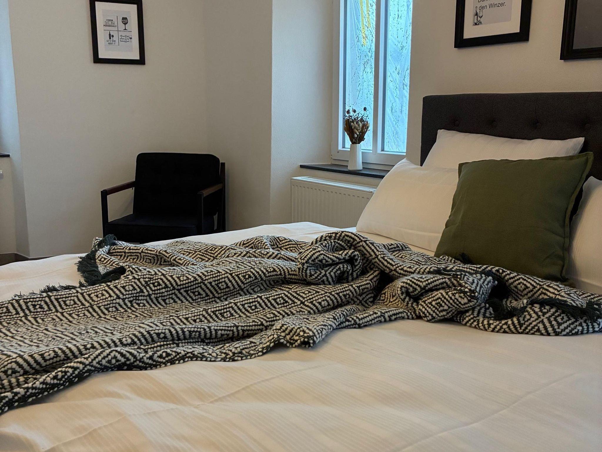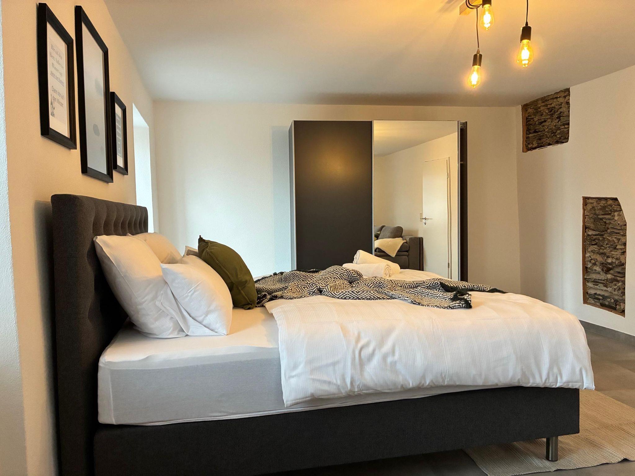 Für Gäste, die Weite und spektakuläre Ausblicke lieben, ist unsere Galeriewohnung die ideale Wahl. Mit großzügigen 160 m² bietet sie viel Raum und Freiheit. Sie erreichen diese exklusive Wohnung über einen charmanten Balkon auf der Rückseite des Hauses, der Sie direkt in die erste Etage führt. Im Inneren erwarten Sie moderne Schlafzimmer, eine brandneue Küche und ein großes, lichtdurchflutetes Bad. Von gleich zwei Balkonen genießen Sie einen atemberaubenden Fernblick auf die Moselschleife – perfekt für entspannte Morgenstunden oder laue Abende.