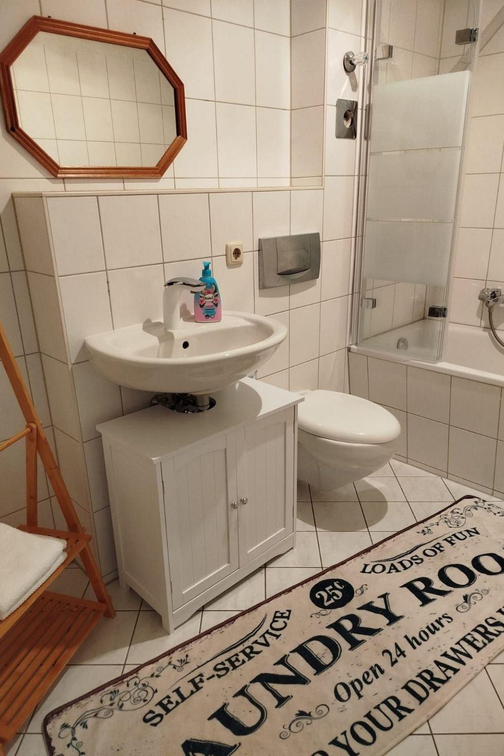 Inside, you will find a generously proportioned flat that leaves nothing to be desired. Three lovingly furnished bedrooms allow for flexible sleeping arrangements: whether double or single beds, there is something to suit every guest. Two of the bedrooms are equipped with comfortable double beds and additional sleeping facilities, while the third bedroom, adjacent to the balcony, has another double bed for a peaceful night's sleep. The practical equipment with filter coffee machine, dishwasher and kettle fulfils all the needs of modern everyday life and invites you to enjoy meals together in the spacious kitchen.