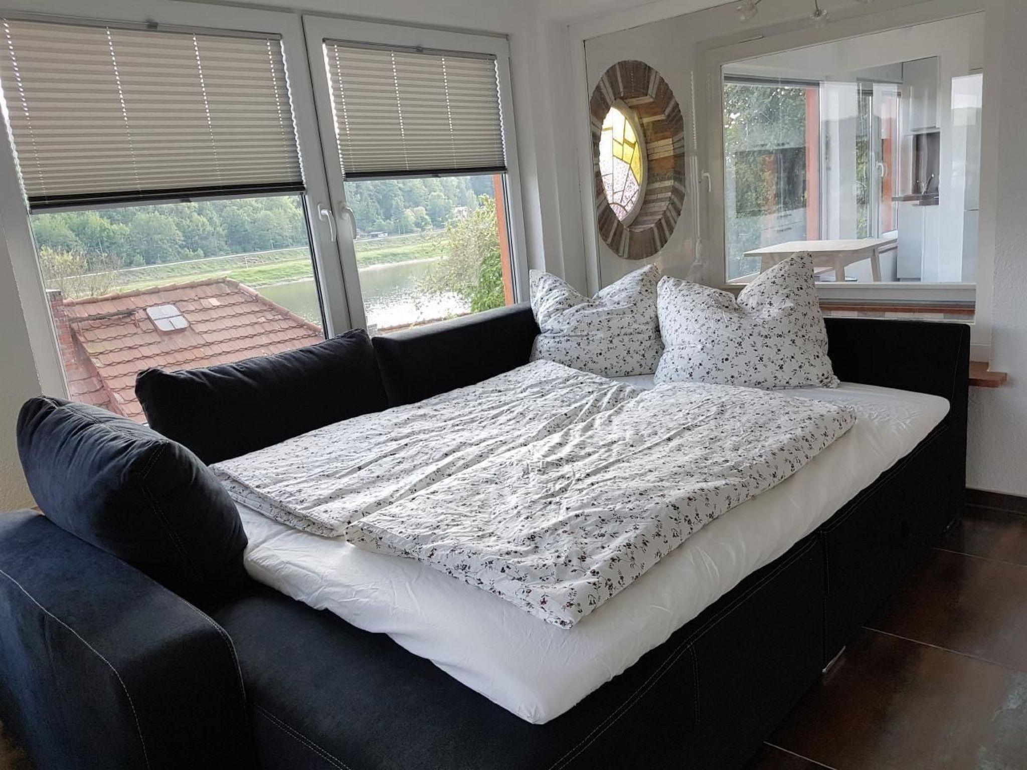 Enjoy the best time of the year in our bungalow close to nature with a wonderful view over the rooftops of Posta. It is located on the Elbe cycle path in Pirna (near Dresden) - the gateway to Saxon Switzerland.