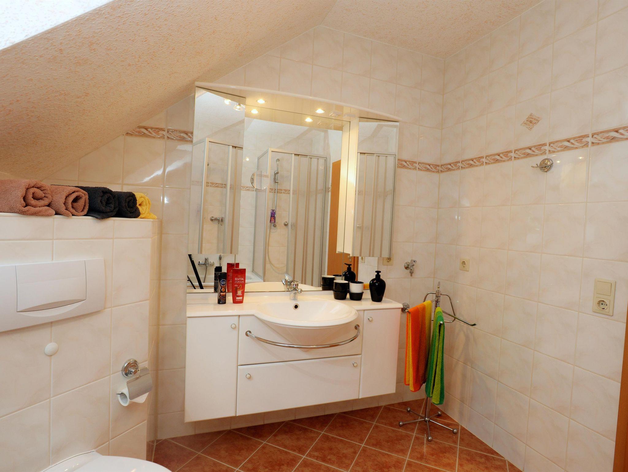Die Wohnung in der ersten Etage eines Zweifamilienhauses bietet auf 65 m² komfortables Wohnen für 2 bis 4 Personen. Der großzügige Zuschnitt der Räume ermöglicht ein ungestörtes Verweilen und bietet Rückzugsmöglichkeiten. Das große Wohnzimmer enthält eine bequeme Polstergarnitur, Kabel-TV, Musikanlage, einen Esstisch... Frühstück und Tagesausklang gern auch auf dem geräumigen Sonnenbalkon; großes, ruhiges Schlafzimmer; Bad mit Wanne, separater Dusche und Fußbodenheizung; voll ausgestattete Küche