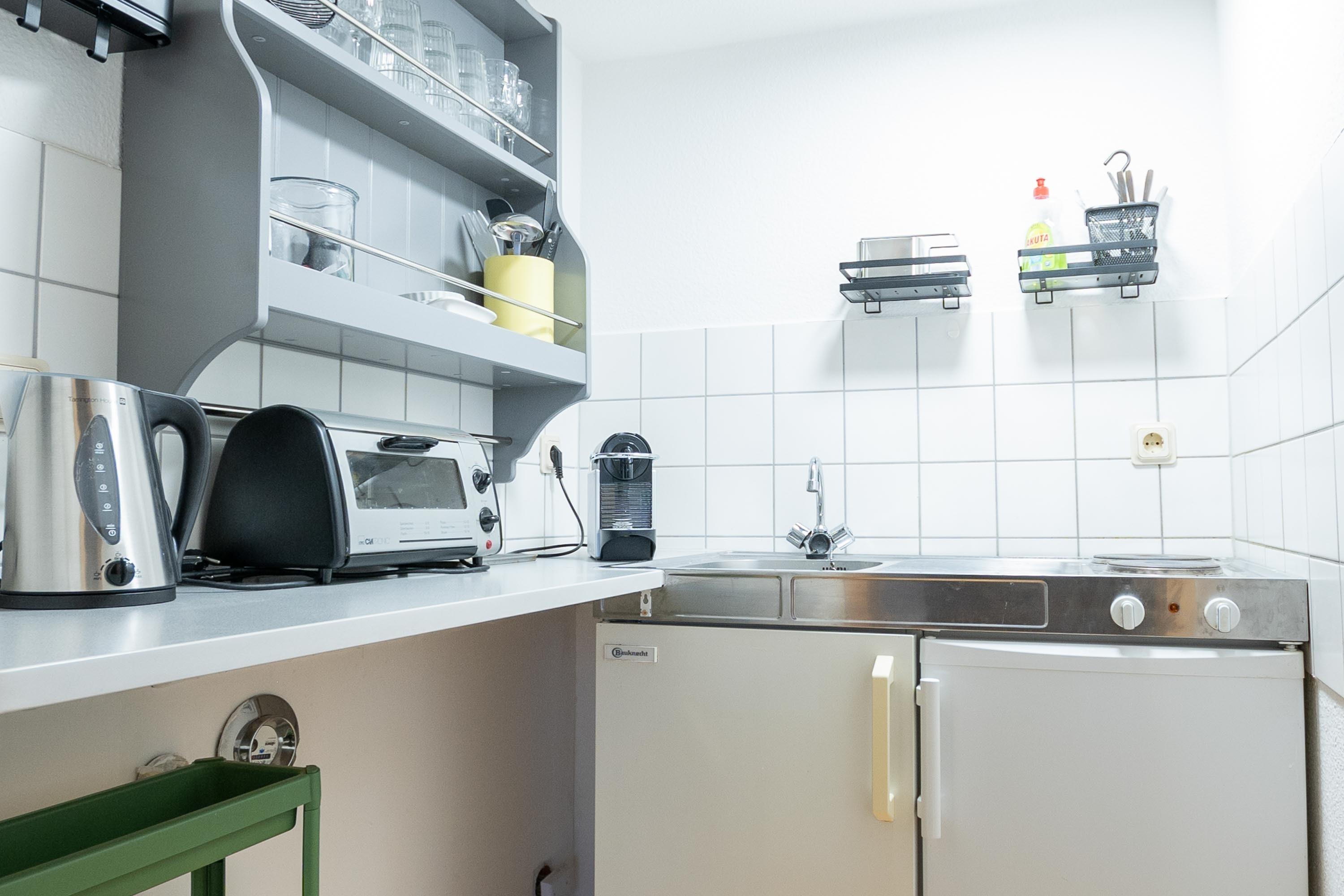 Die Ausstattung des Apartments umfasst ein gemütlichen Wohnzimmer mit offener Küche und einen Flachbild-TV, sowie einen Internetzugang via WLAN. Die offene Wohnküche ist mit einer Kaffeemaschine (Filter), einem Toaster, und einem Wasserkocher ausgestattet. Für längere Aufenthalte befinden sich auch ein Trockner und eine Waschmaschine in der Ferienunterkunft.