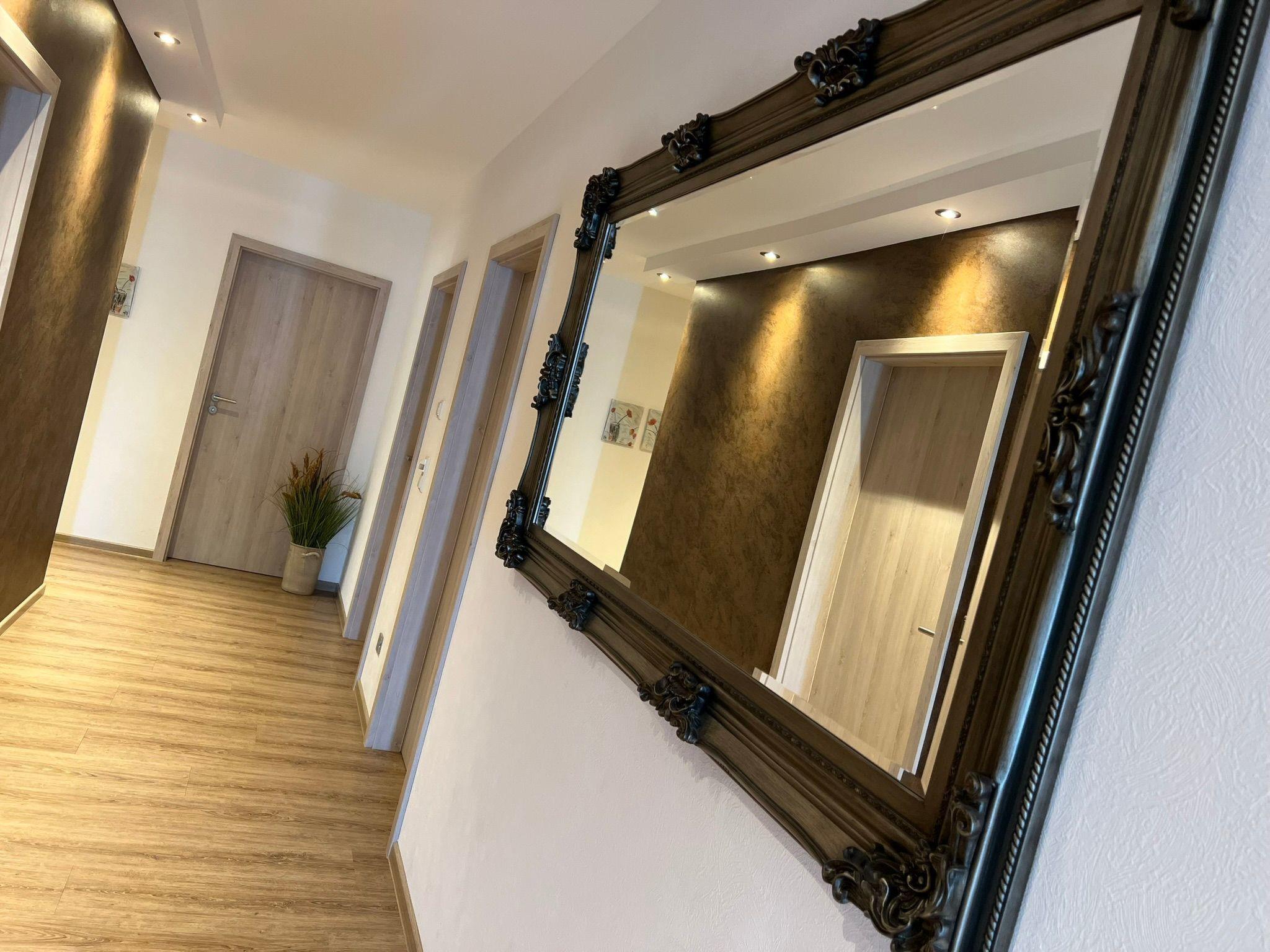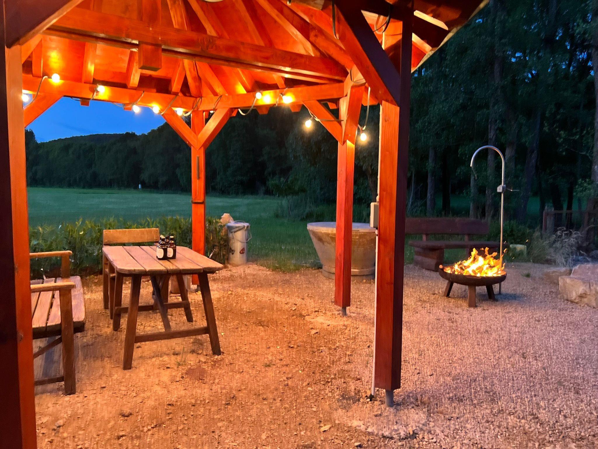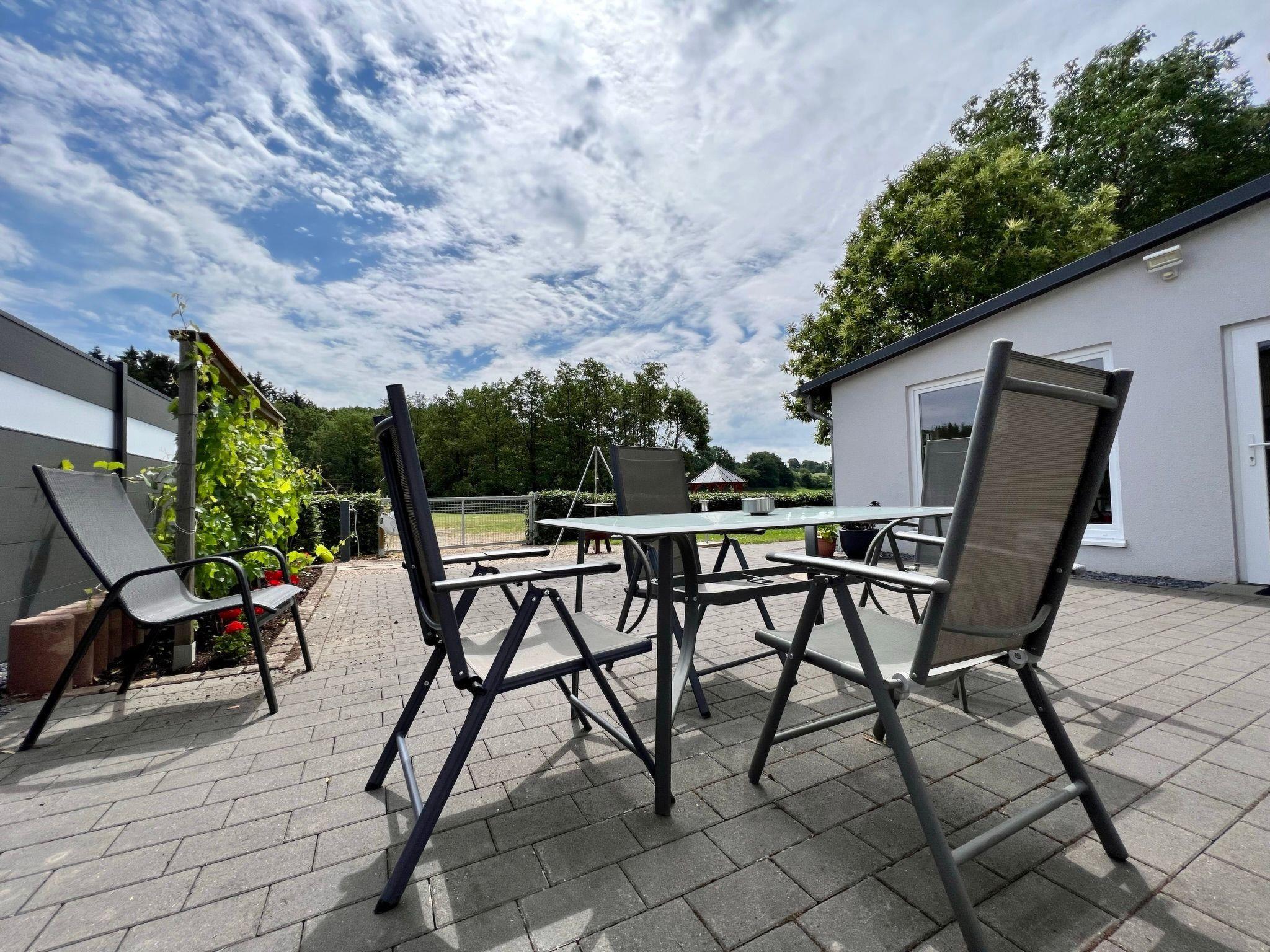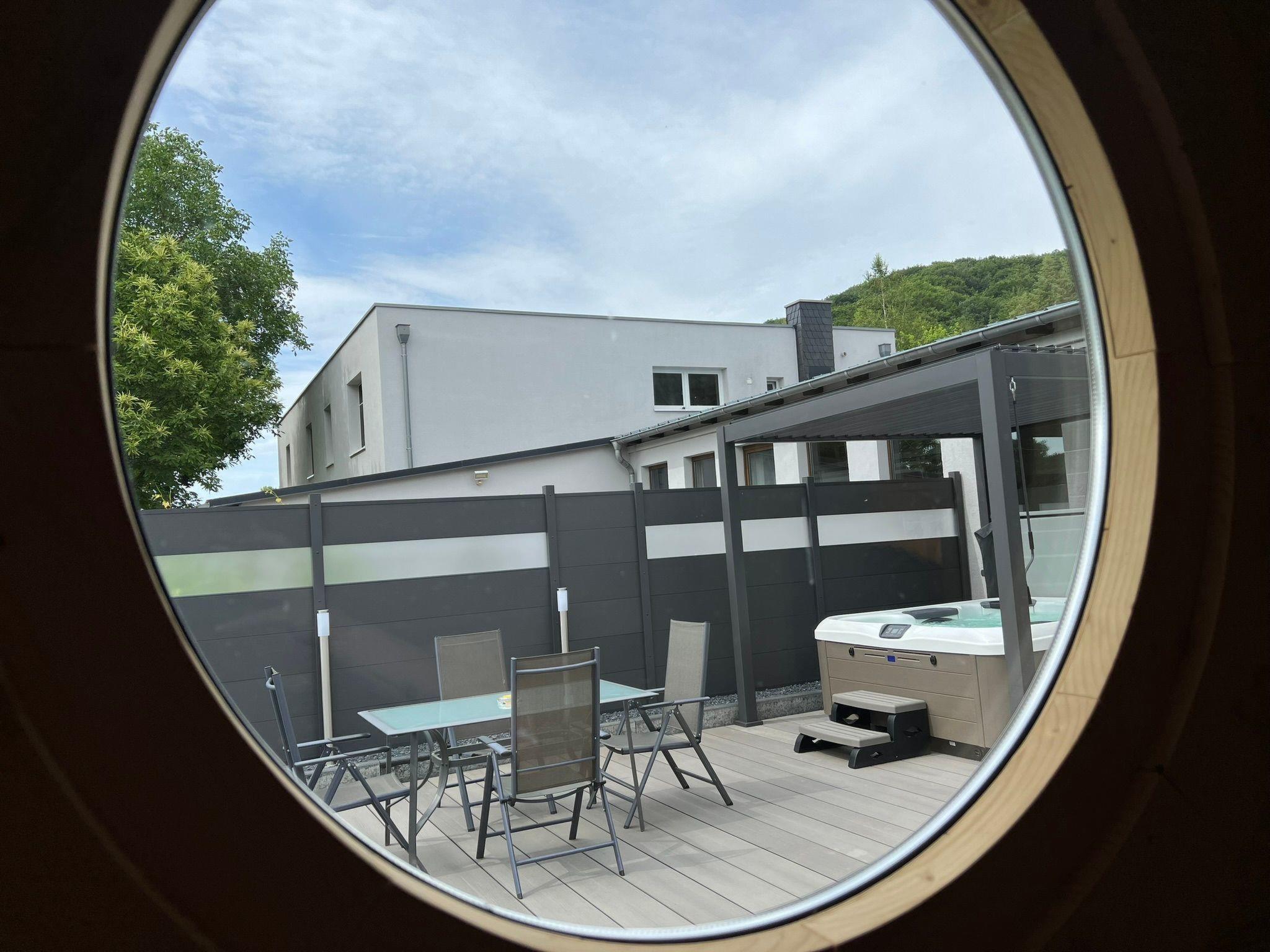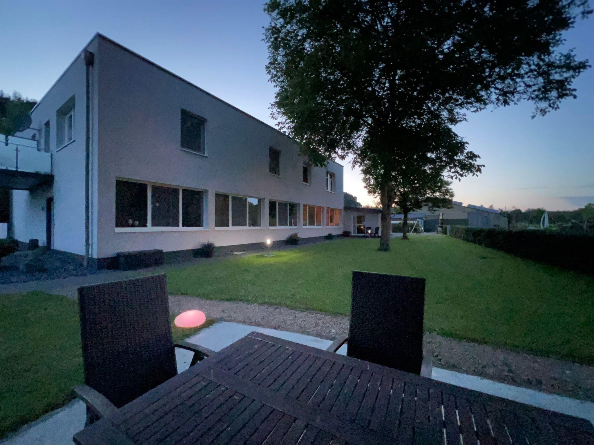 Outside, a generously designed wellness area awaits you, inviting you to relax. This area includes a sauna house, a jacuzzi and a terrace and is open daily from 9 am to 10 pm. Garden furniture, a barbecue area with a large barbecue as well as a well-tended lawn and a wide meadow offer additional space for activities or relaxing hours outdoors.