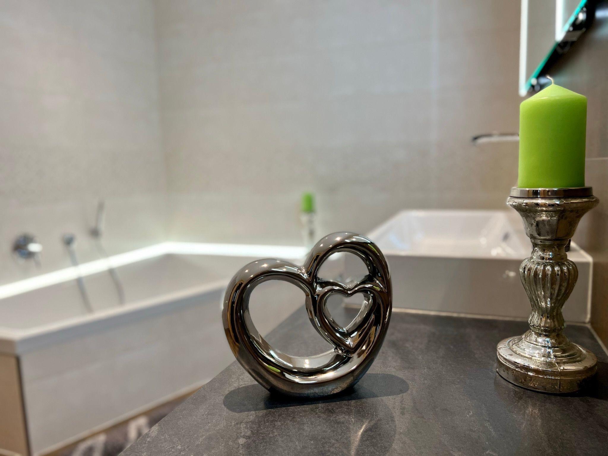 The holiday suite extends over approx. 120 square metres on the ground floor and has three inviting bedrooms, a living room with an open-plan kitchen and dining area as well as a hallway and a guest WC. The wellness bathroom promises special relaxation with its infrared deep-heat sauna, which provides additional well-being with a brine nebuliser, and a large bathtub for two people. A cot can also be accommodated on request. The facilities leave nothing to be desired and guarantee a comfortable stay.
