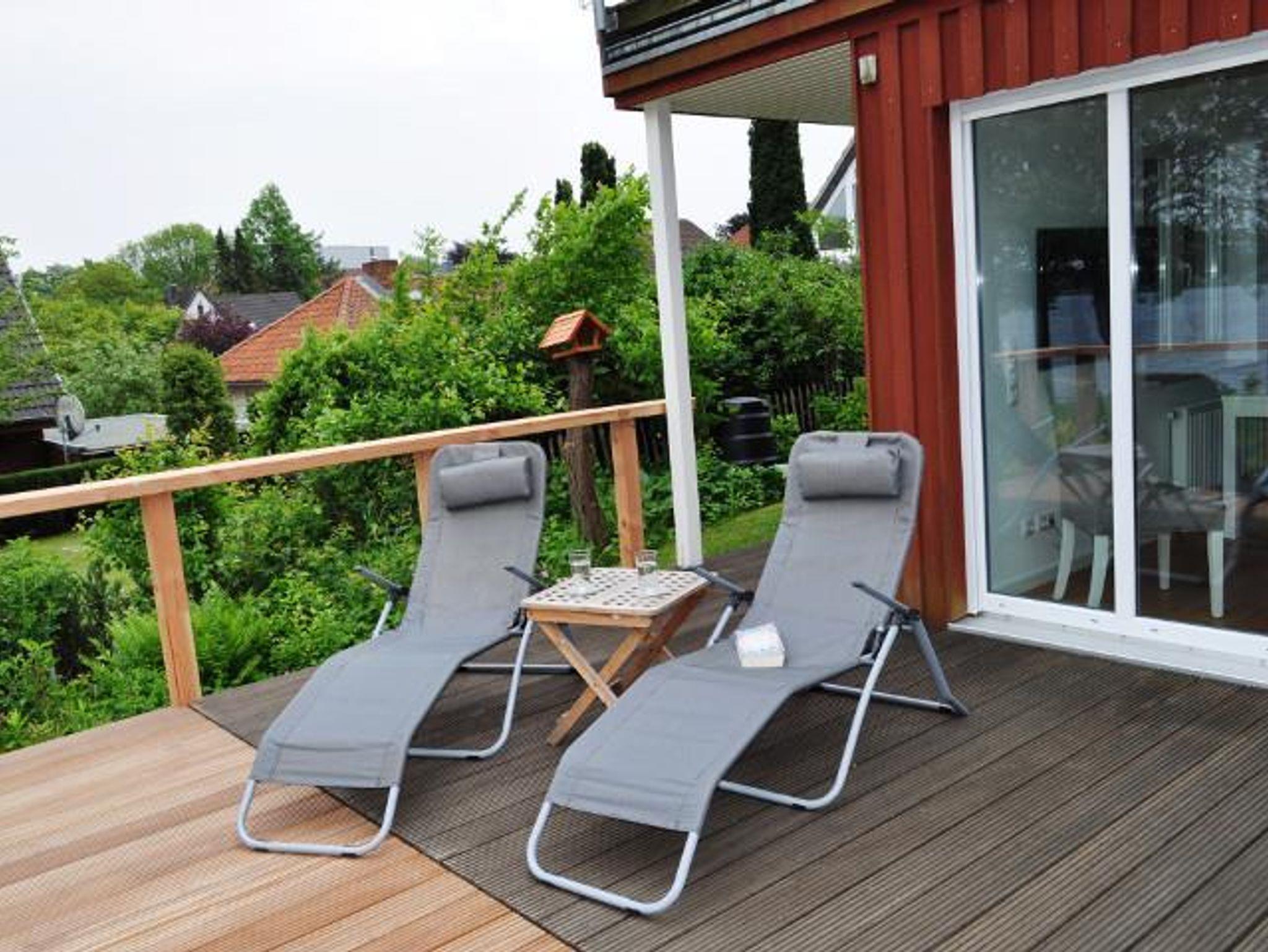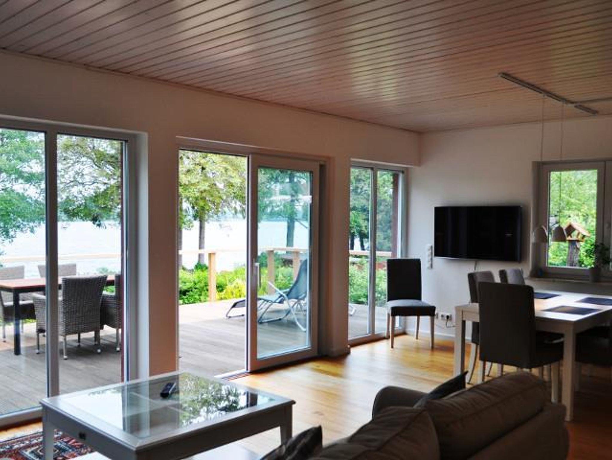 Das Ferienhaus verfügt über eine Wohn-Esszimmer mit Kaminofen, eine modern eingerichtete und gut ausgestatte Küche, 2 Schlafzimmer, 2 Badezimmer mit Dusche/WC und Badewanne. Eine große Terrasse zur Seeseite mit Gartenmöbeln und eigenen Seezugang mit Steg und Ruderboot.