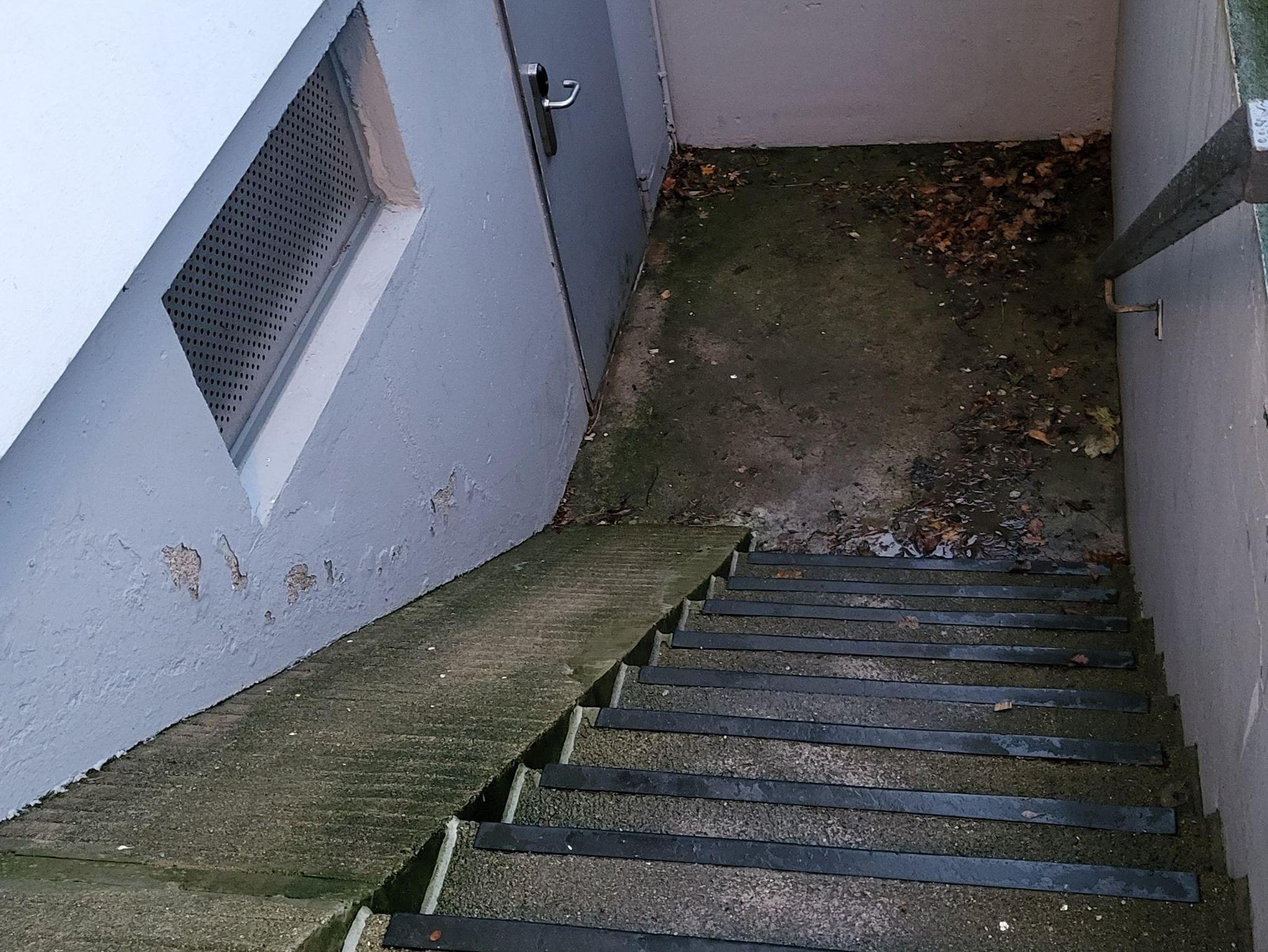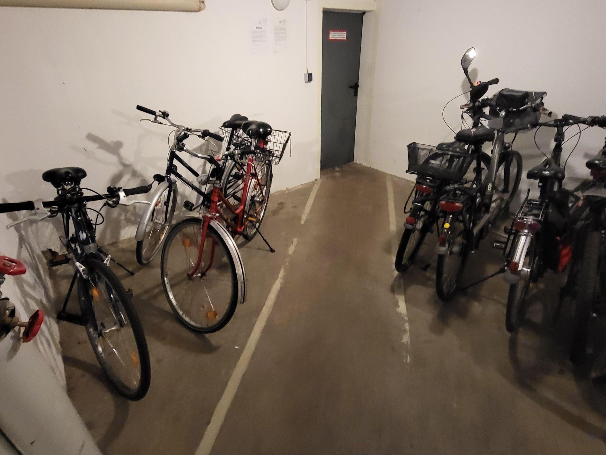 Neben dem Haupteingang befindet sich ein Fahrradkeller, sowie neben dem unten gelegenen Parkplatz von der Straße Ölmühlenallee abgehend ein Kanu-/Kajakwandständer.
