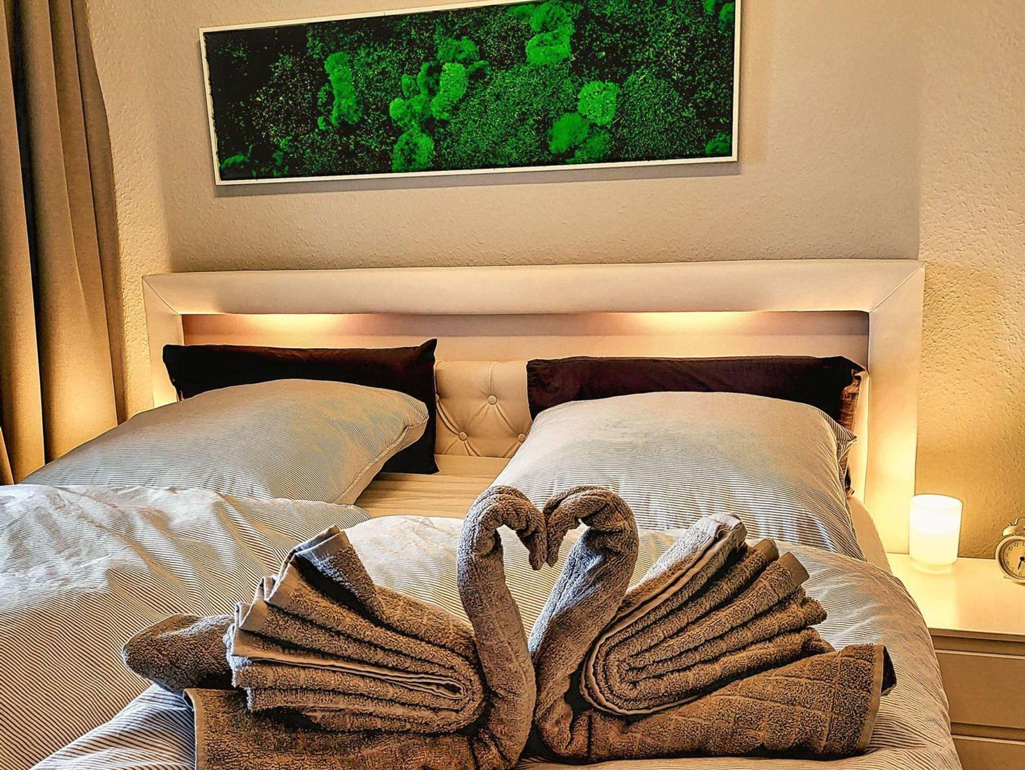 Beobachten Sie die aufgehende Sonne beim Morgenkaffee, und starten Sie dann z.B. mit ein paar Schwimmzügen im PlönBad, das sich direkt neben dem Appartementgebäude befindet. Oder nutzen Sie das vergünstigte Guten-Abend-Ticket, um in den Bad-Landschaften im Lichtarrangement vom PlönBad zu entspannen. Näheres entnehmen Sie der Webseite vom PlönBad (https://www.ploenbad.de).