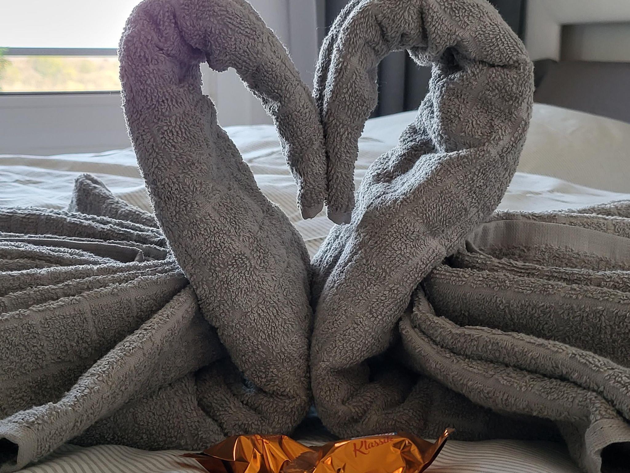 Im Bad liegen mehrere frische Handtücher bereit.
