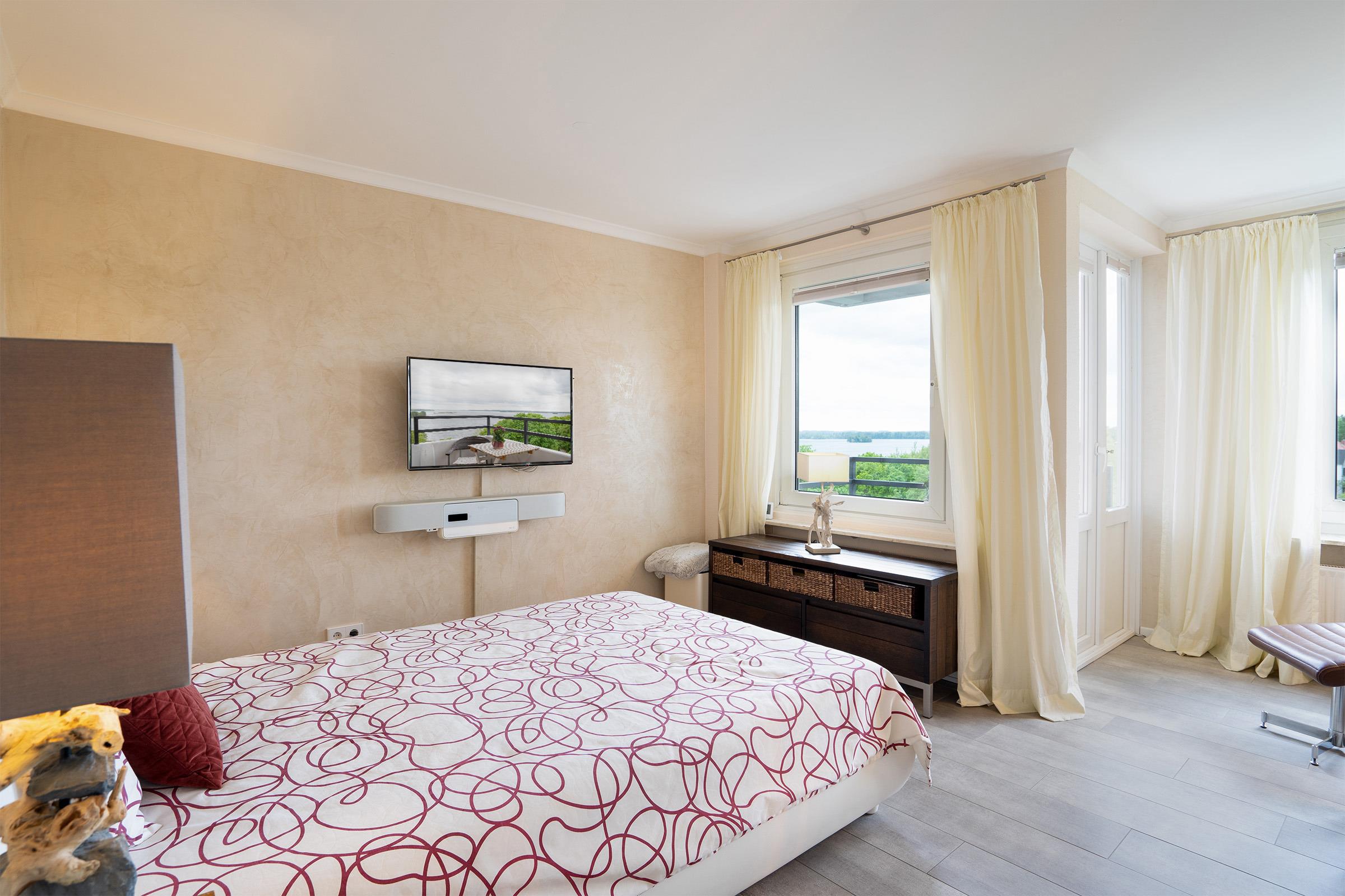 Das Apartment liegt im 5. Stock eines Hauses in der Ölmühlenallee, direkt am Großen Plöner See. Es verfügt über ein Wohn-/Schlafzimmer mit großen Panoramafenstern, eine hochwertig ausgestattete Küchenzeile mit Essplatz sowie ein modern saniertes Badezimmer mit Dusche und WC. Ein eigener Balkon eröffnet einen wunderbaren Blick auf den See.