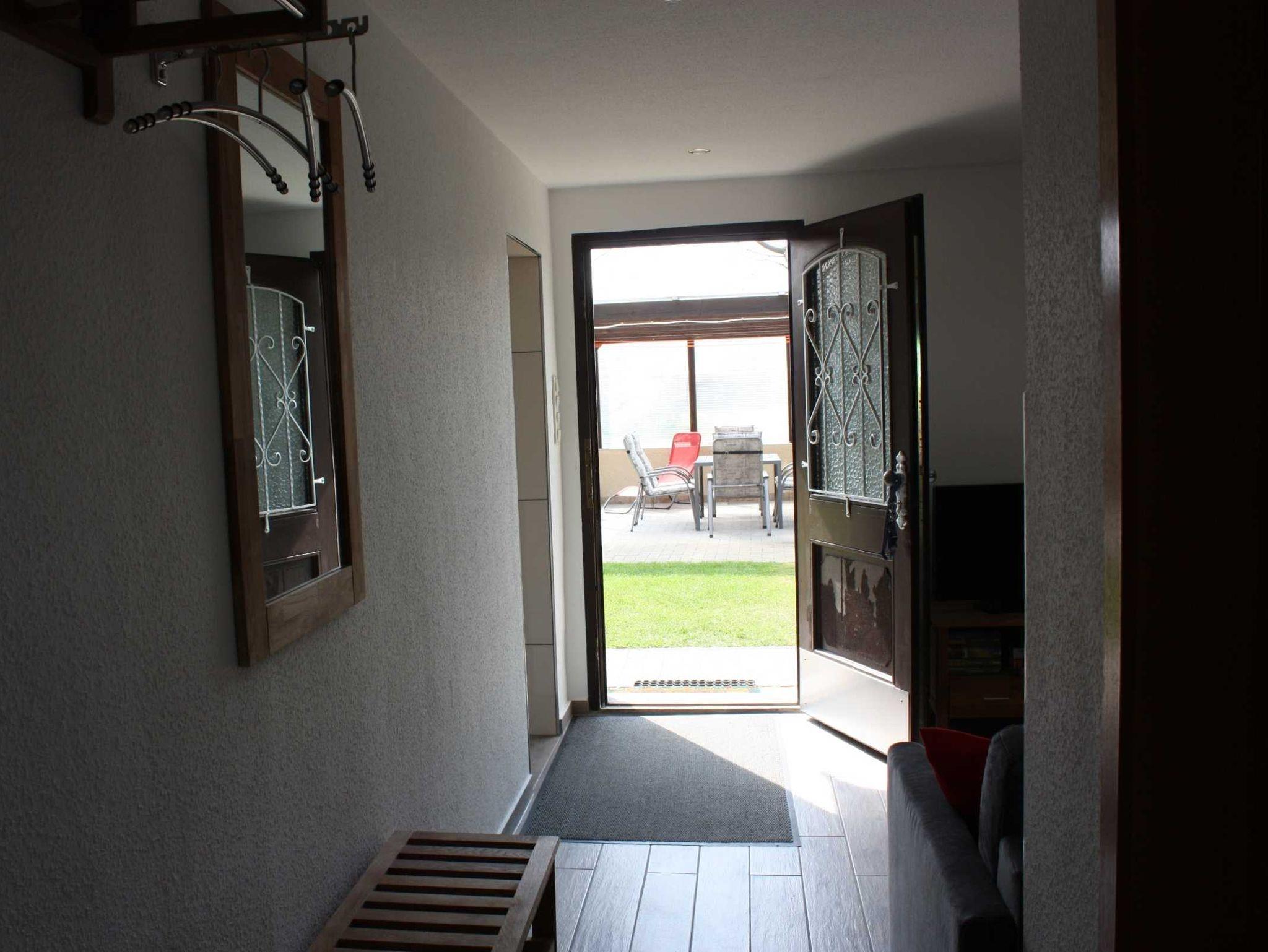 Die Ferienwohnung liegt am Haus der Vermieter und bietet Platz für 3 Personen plus 1 Aufbettung. Im Außenbereich ist eine überdachte Sitzecke mit Grillmöglichkeit. Eine idyllische Feuerstelle und viel Grünfläche laden zum Erholen ein.