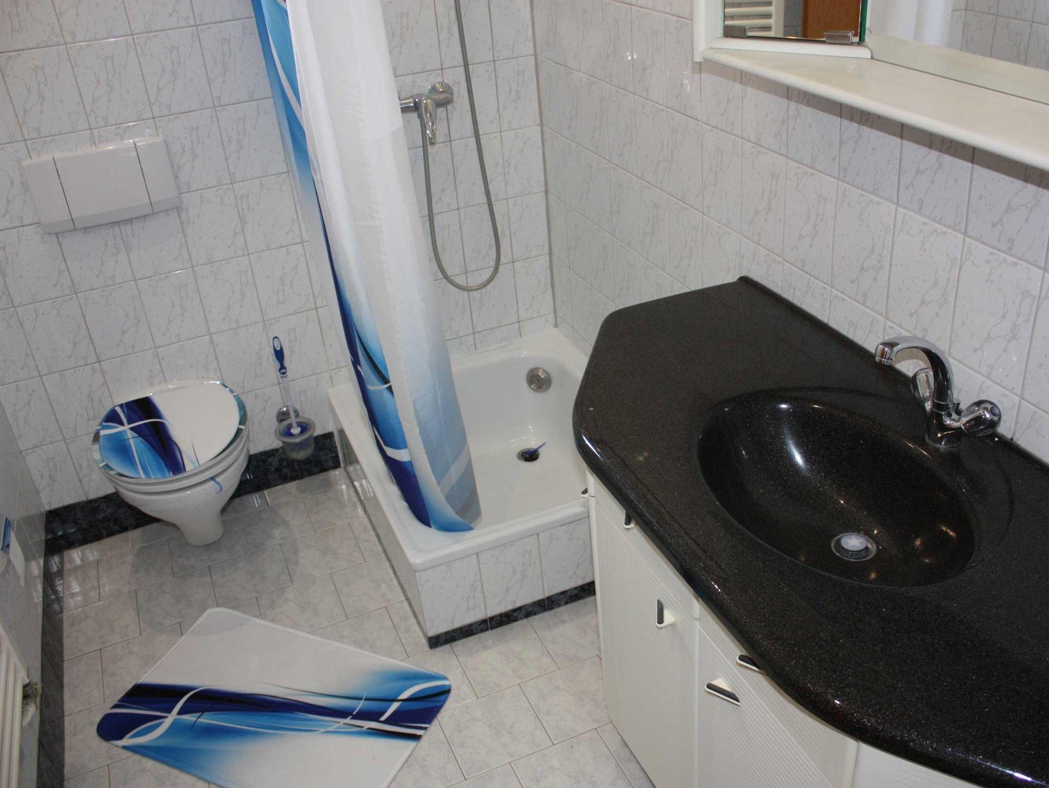 Die Ferienwohnung für max. 3 Erwachsene und 1 Kind bis 10 Jahre. Die Wohnung verfügt über 1 Wohnzimmer (15 m²) mit einer Schlafcouch (Aufbettungsmöglichkeit), TV/SAT, eine große Einbauküche (15 m²) mit Sitzecke, E-Herd mit Backröhre, Waschmaschine, Kühlschrank, Tiefkühlwürfel, Wasserkocher, Kaffemaschine und Mikrowelle.