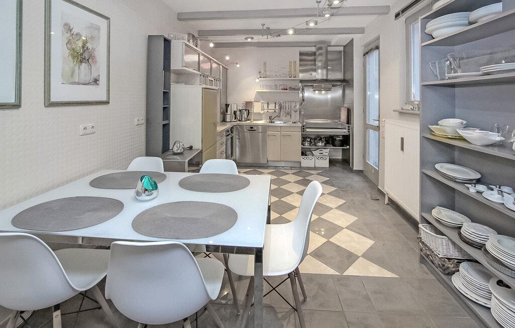 Det komfortable feriehus ligger på en separat rækkehus, rekreativ ejendom direkte ved Eldes bred. Elde, en vandvej mellem Plauer-søen og Schwerin-vandet, løber gennem byen Plau, og en smuk promenade løber langs bredden. Feriehuset er komfortabelt og stilfuldt indrettet. Den har et åbent layout (ingen døre). I stueplan er der opholdsstue (polstret opholdsområde med 4 lænestole, stort LCD TV, musikanlæg, WiFi) samt åben passage til veludstyret køkken med spiseplads, el-komfur, opvaskemaskine og diverse køkkenmaskiner. . På øverste etage er der åbent soveområde med dobbeltseng på galleri, dobbelt sovesofa og påklædningsværelse samt badeværelse med brus/toilet. Huset kan opvarmes centralt. Barneseng til rådighed. Grundet flere trin er feriehuset ikke velegnet til gangbesværede gæster. Der er en dam med guldfisk udenfor, og der er også 2 møblerede terrasser, en grillplads, WiFi og en parkeringsplads. Den samlede pris inkluderer slutrengøring, sengetøj, vand og energiforbrug. Betales på stedet: turistskat. Det klimatiske kursted Plau am See, som "porten" til Mecklenburg Lake District, har en lang tradition som feriested. Med sine 38,4 km² er søen af samme navn den tredjestørste i Mecklenburg-Vorpommern og byder på de bedste betingelser for vandsportsentusiaster og hobbyfiskere. Det bakkede område med skove og andre små eller større søer byder på mange andre udflugtsmuligheder til fods eller på cykel.Naturparken Nossentiner/Schwinzer Heide begynder på den nordlige bred af Plauer-søen og er et populært udflugtsmål, som er detaljeret beskrevet i "Karower Meiler", udsigtstårnet "Moorochse" lige ved søen. I selve Plau er der flere badestrande, båd- og cykeludlejning, dykker- og sejlerskoler, klatreparker, passagerbådsture og fisketilbud. Den maleriske gamle bydel, som stadig i dag er præget af landbrugsborgernes bindingsværks- og murstenshuse, inviterer til at slentre rundt med talrige restauranter, caféer og indkøbsmuligheder.