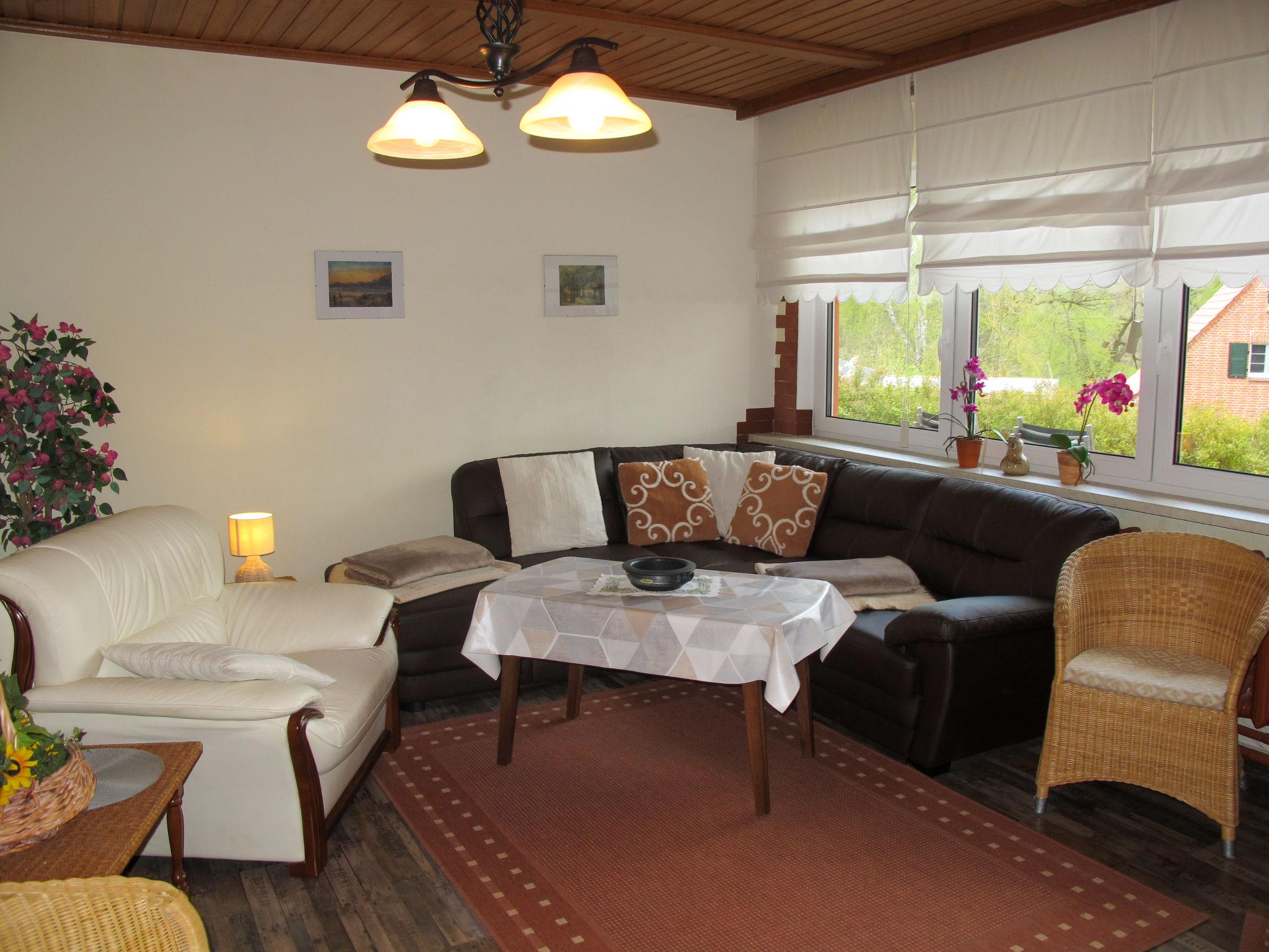 5-room house 120 m2, on the upper ground floor. Bright, cosy furnishings: living room with satellite TV and hi-fi system. Open dining room. 1 room with 2 beds. Exit to the terrace. 1 double bedroom. 1 room with 2 beds. Kitchen (4 hot plates, oven, dishwasher, toaster, kettle, electric coffee machine). Shower/WC, sep. WC. Gas heating. Terrace 20 m2. Terrace furniture, barbecue, deck chairs (2), conservatory. Facilities: children's high chair, baby cot. Internet (WiFi, free). Please note: non-smoking house. 1 small pet/ dog allowed. Smoke alarm. Bookings accepted for holiday purposes only.