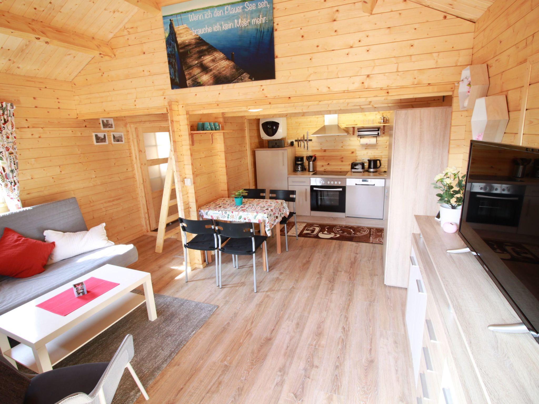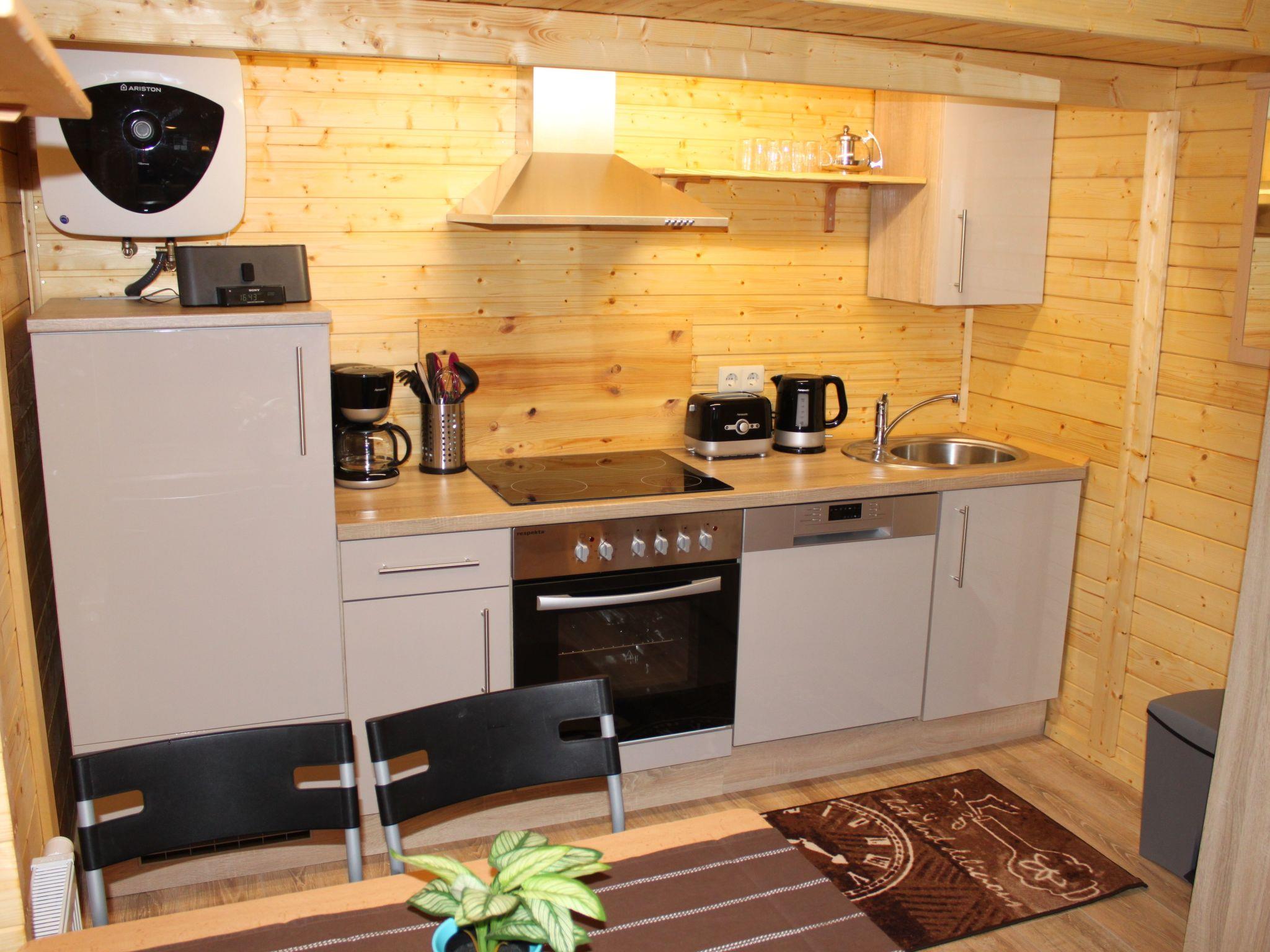 In the living area there is a sofa bed (140 x 200 cm), a Smart TV with internet access, a CD hi-fi system with Bluetooth and DAB+, as well as an open, separate, fully equipped kitchen with oven, ceramic hob, microwave, fridge with freezer compartment and a dishwasher. You can reach the cosy sleeping loft via a ladder. Here you will find a double bed 180x200 and a sleeping mattress 120x180 cm. Bed linen, internet via W-LAN, electricity and water consumption, high chair and travel cot are already included in the accommodation price