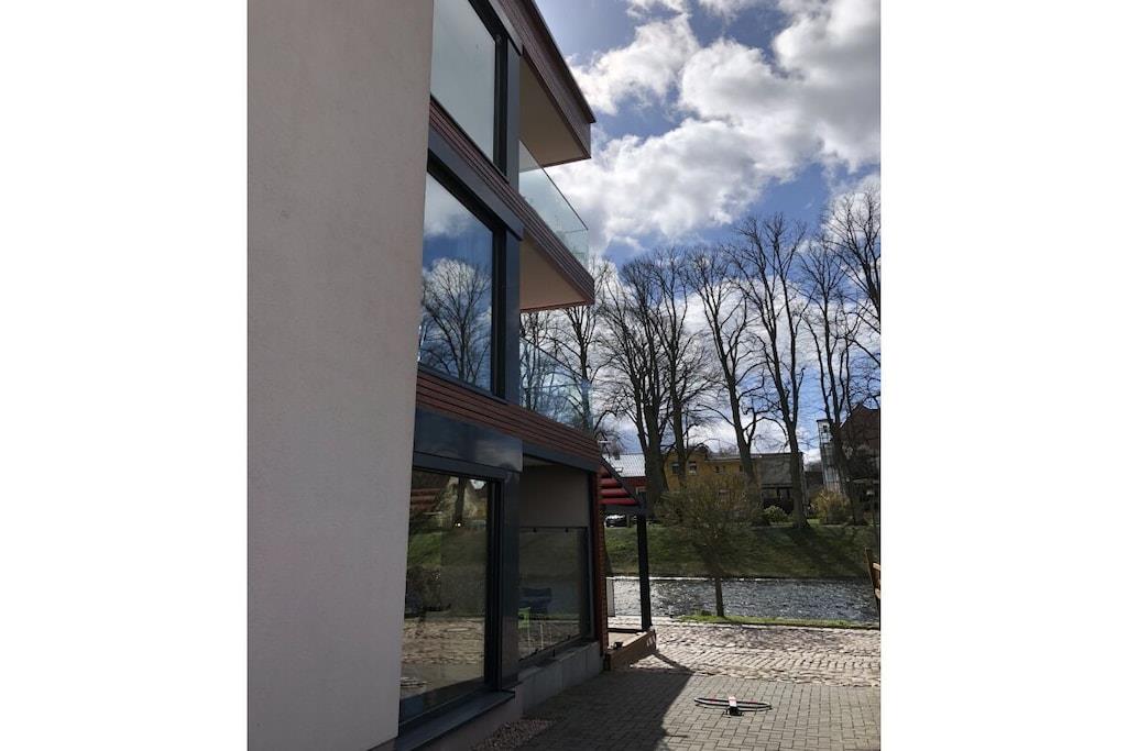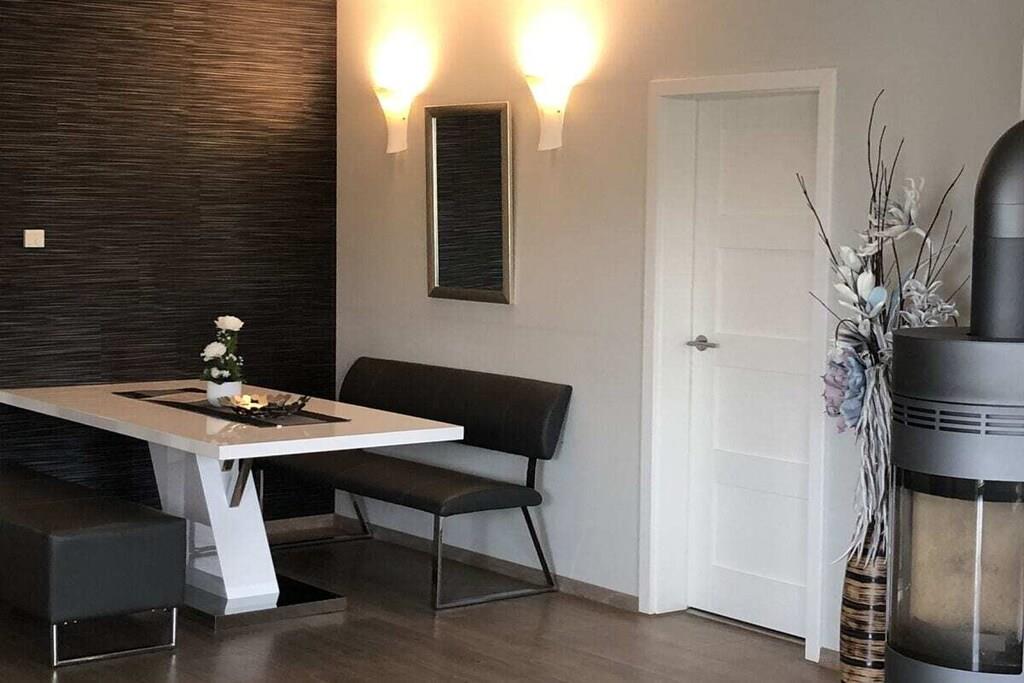 Spend your vacation in our modern Eldeufer apartment in a fantastically beautiful location, quietly located but still central to the idyllic listed old town! The building was lavishly built in 2013 in the Bauhaus style. The apartment is on the first floor. It is comfortably and tastefully furnished with a whirlpool, fireplace and infrared cabin and is only 500 meters from Lake Plau. The luxurious apartment has a 30 sqm terrace that gives you a unique panoramic view from the sensational Plau lift bridge to the historic chicken ladder and the lock. Passing water hikers on the Müritz-Elde waterway take you far away from everyday life... Bathing in the Elde directly in front of the house is also very popular with the locals because of the excellent water quality. The extremely popular health resort of Plau am See has a very beautiful promenade for strolling, past the town harbor, various restaurants and ice cream parlors, the Müritz fishermen with fresh fish and all the way to the lighthouse at the peat bog. Bicycles can be parked in the yard. After loading and unloading in front of the house, you can use the public parking spaces not far away. On the ground floor of the house, Zeisler's dining room offers you fine specialties in a cozy ambience and relaxed atmosphere. We look forward to your visit! Your host Jeanette Erdmann