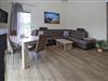 På 1. etage: (køkken-alrum(spisebord, kogeplade(glaskeramisk), elkedel, brødrister, kaffemaskine, ovn, opvaskemaskine , køle-fryseskab), stue / spisestue(dobbeltsovesofa, Fjernsyn(parabol), pejs, radio), soveværelse(dobbeltseng(200 x 180 cm)), soveværelse(enkeltseng, enkeltseng), badeværelse(bruser, toilet)) Loft: (soveværelse(dobbeltseng(200 x 180 cm)), toilet(guest toilet)) sofahjørne, balkon, balkon, varme(gas), varme(gulvvarme), have(deles med andre gæster), havemøbler, parkering, Håndklæder mod et gebyr, Sengelinned inkl.