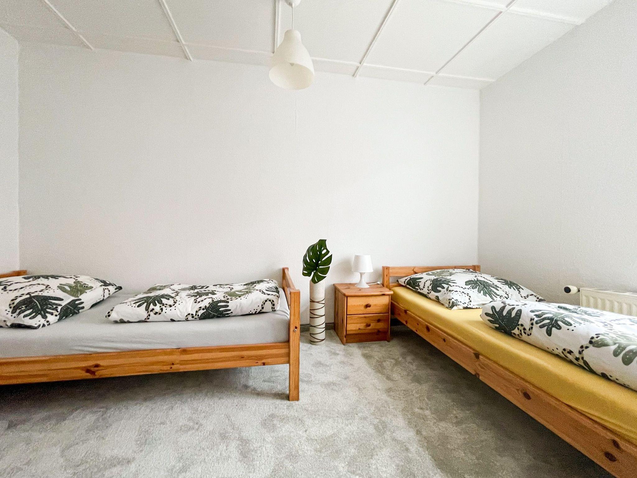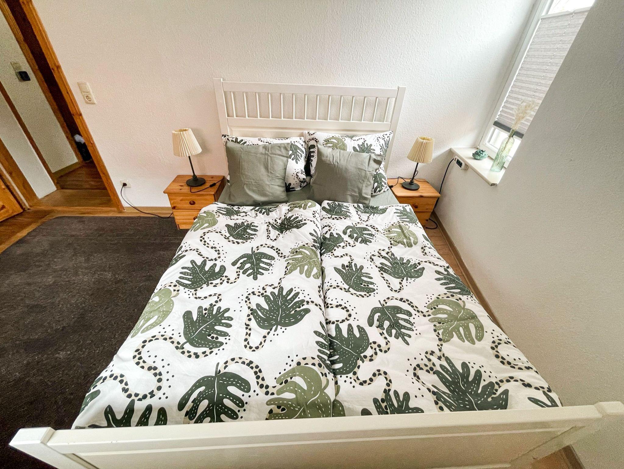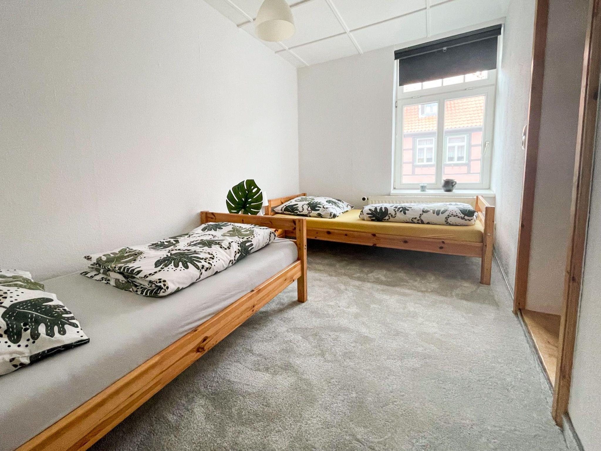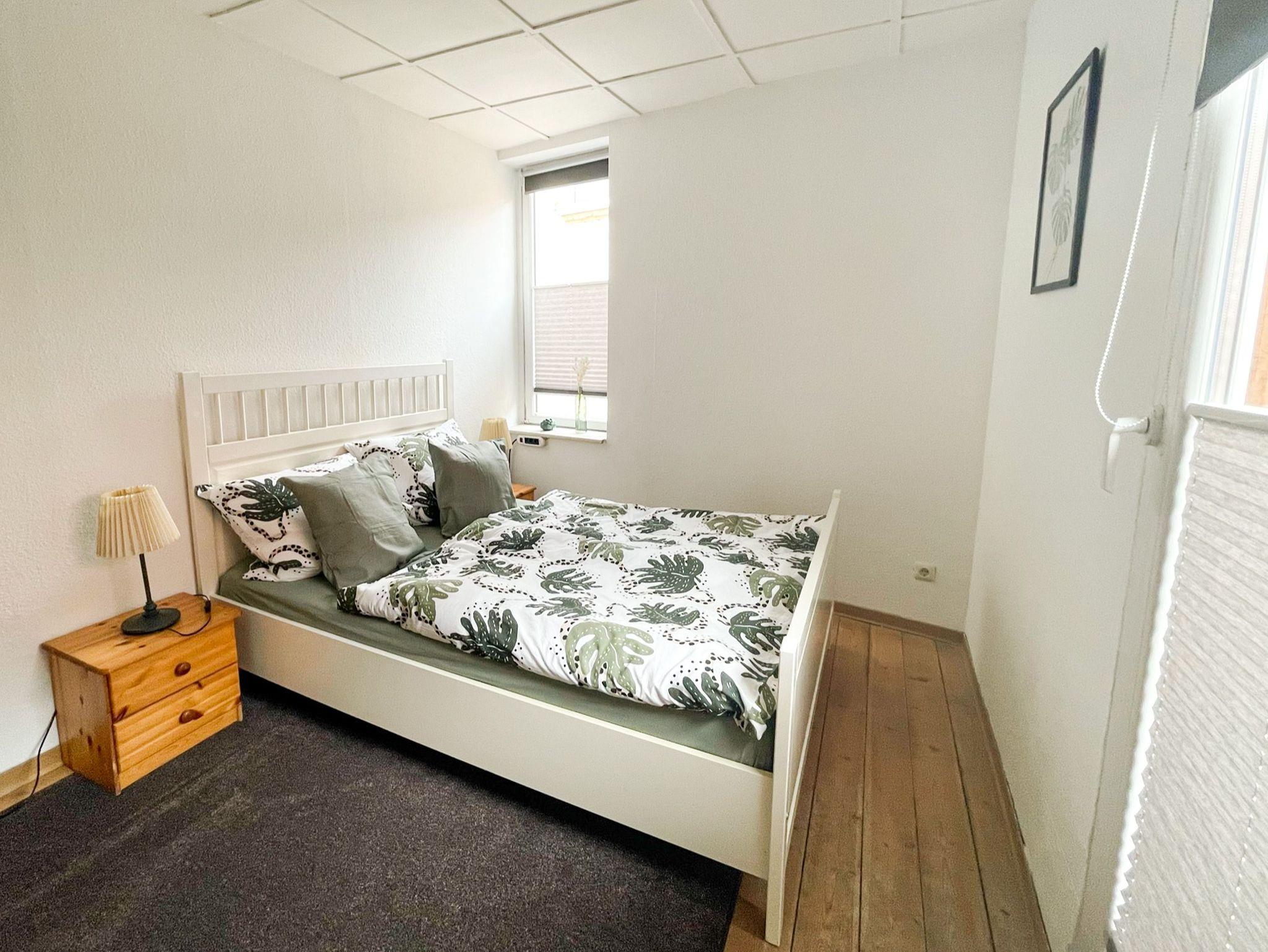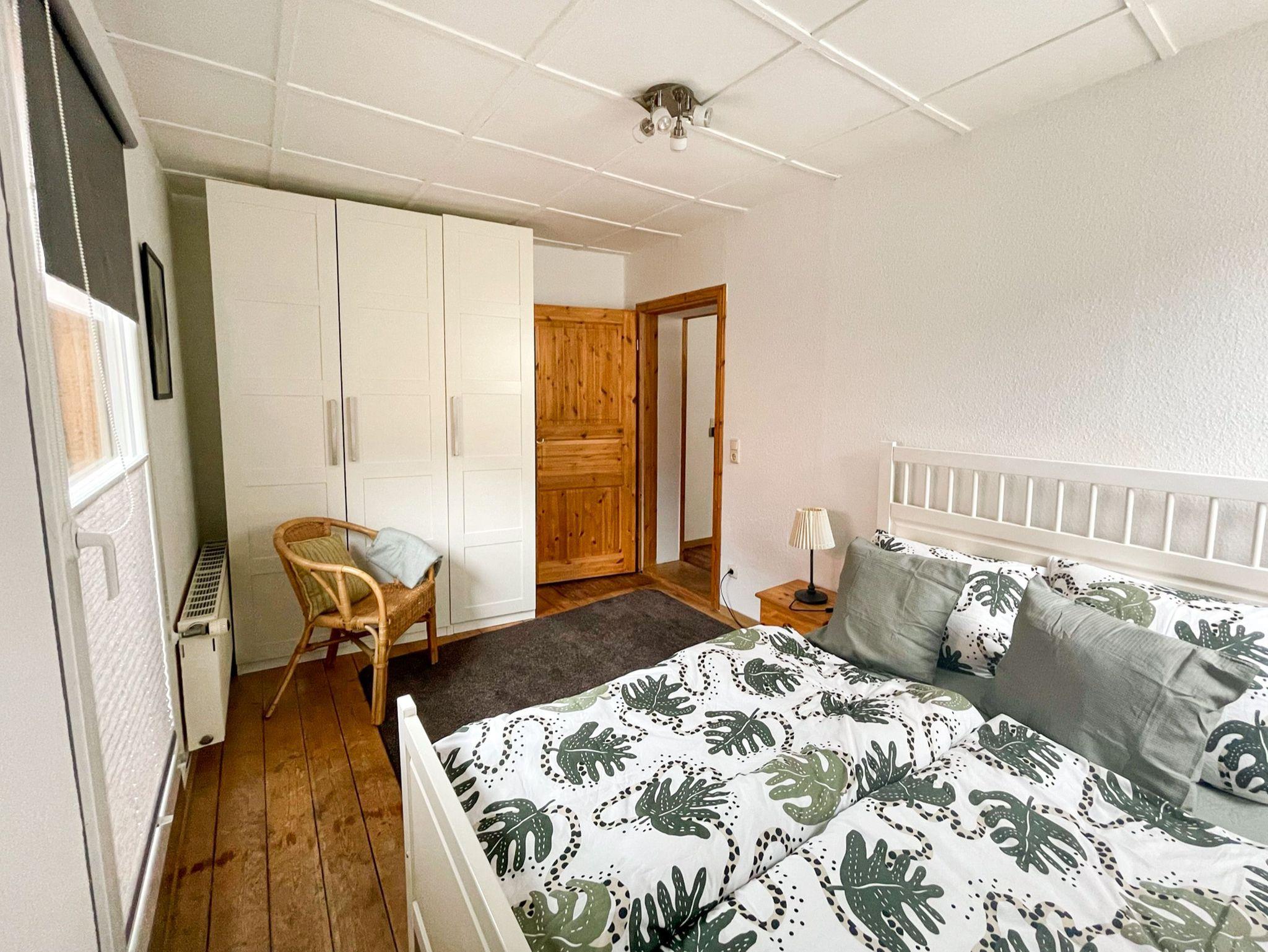 Die charmante Ferienwohnung Anneliese liegt im Obergeschoss eines Fachwerkhauses und ist über eine steile zu erreichen. In den zwei behaglichen Schlafzimmern findest du erholsamen Schlaf: Das eine ist mit einem bequemen Doppelbett (140x200) ausgestattet, das andere mit zwei Einzelbetten (90x200). Das Wohnzimmer lädt mit seinem gemütlichen Sofa und dem TV zu entspannten Abenden ein, an denen du die Erlebnisse des Tages in Ruhe genießen kannst. Die separate Küche bietet dir alles, was du für die Selbstverpflegung brauchst: Herd, Backofen, alle wichtigen Küchenhelfer und sogar eine Waschmaschine, falls du einen längeren Aufenthalt planst. Das moderne Bad mit Dusche und WC sorgt dafür, dass du dich rundum wohlfühlen kannst.