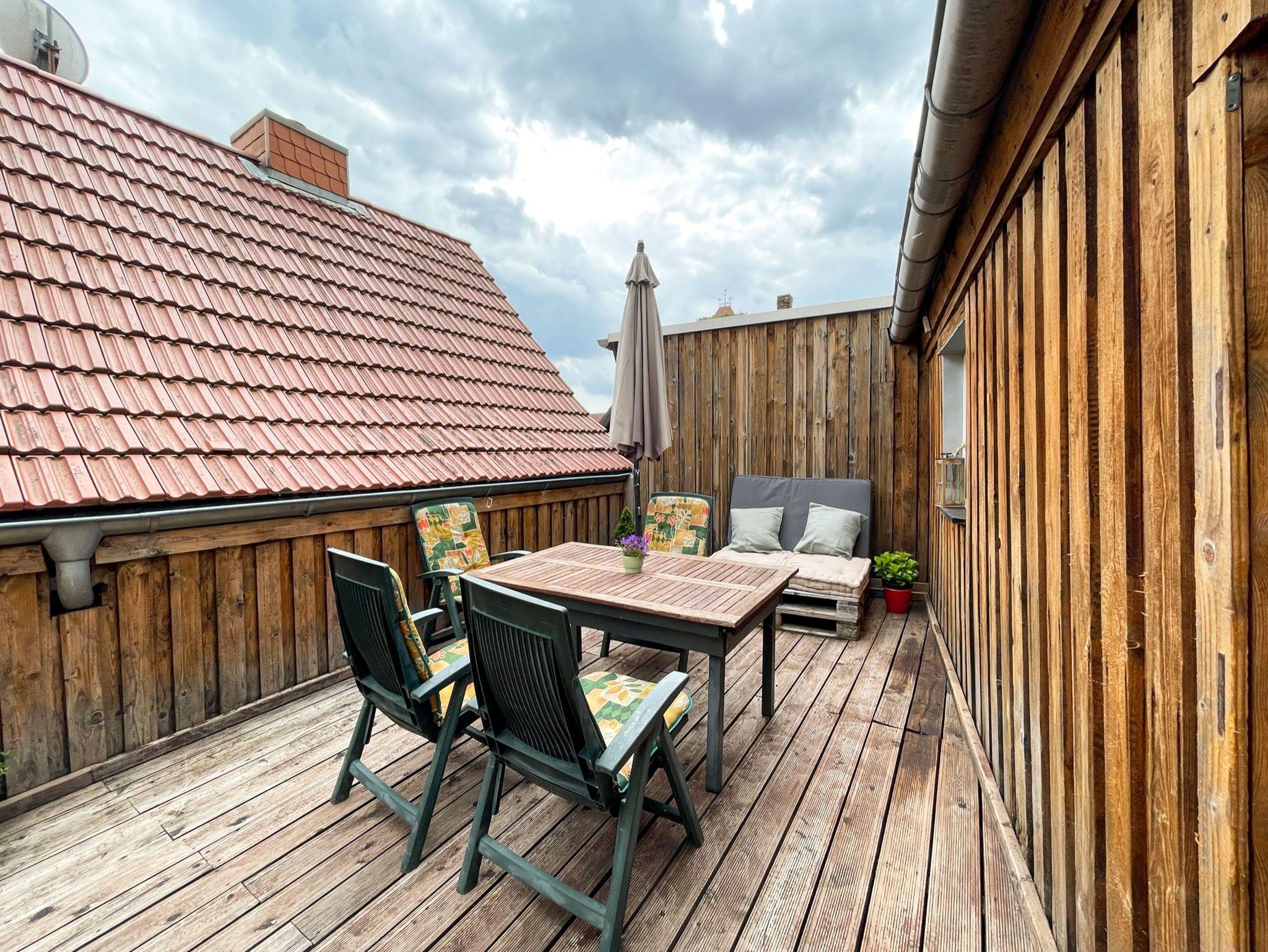 Die gemütliche Ferienwohnung Anneliese befindet sich im Obergeschoss eines charmanten Fachwerkhauses in der Altstadt von Plau am See. Diese liebevoll eingerichtete Wohnung ist ideal für bis zu 4 Personen und ein Kleinkind ? bring einfach ein Kinderbettchen mit, und schon kann es losgehen. In den zwei behaglichen Schlafzimmern findest du erholsamen Schlaf: Das eine ist mit einem bequemen Doppelbett ausgestattet, das andere mit zwei Einzelbetten. Das Wohnzimmer lädt mit seinem gemütlichen Sofa und dem TV zu entspannten Abenden ein, an denen du die Erlebnisse des Tages in Ruhe genießen kannst. Die separate Küche bietet dir alles, was du für die Selbstverpflegung brauchst. Das moderne Bad mit Dusche und WC sorgt dafür, dass du dich rundum wohlfühlen kannst. Ein besonderes Highlight ist die schöne Terrasse, die dir einen herrlichen Ort zum Entspannen im Freien bietet. Mit bequemen Sitzmöglichkeiten und einem Elektrogrill ausgestattet, ist sie perfekt für gemütliche Grillabende an lauen Sommerabenden. Mitten in der Altstadt von Plau am See gelegen, bietet dir die Ferienwohnung Anneliese nicht nur einen ruhigen Rückzugsort, sondern auch die Möglichkeit, das historische Flair und die malerische Umgebung in vollen Zügen zu genießen. Egal, ob du den See erkunden, durch die alten Gassen schlendern oder einfach die Seele baumeln lassen möchtest - hier findest du die ideale Basis für unvergessliche Urlaubstage.