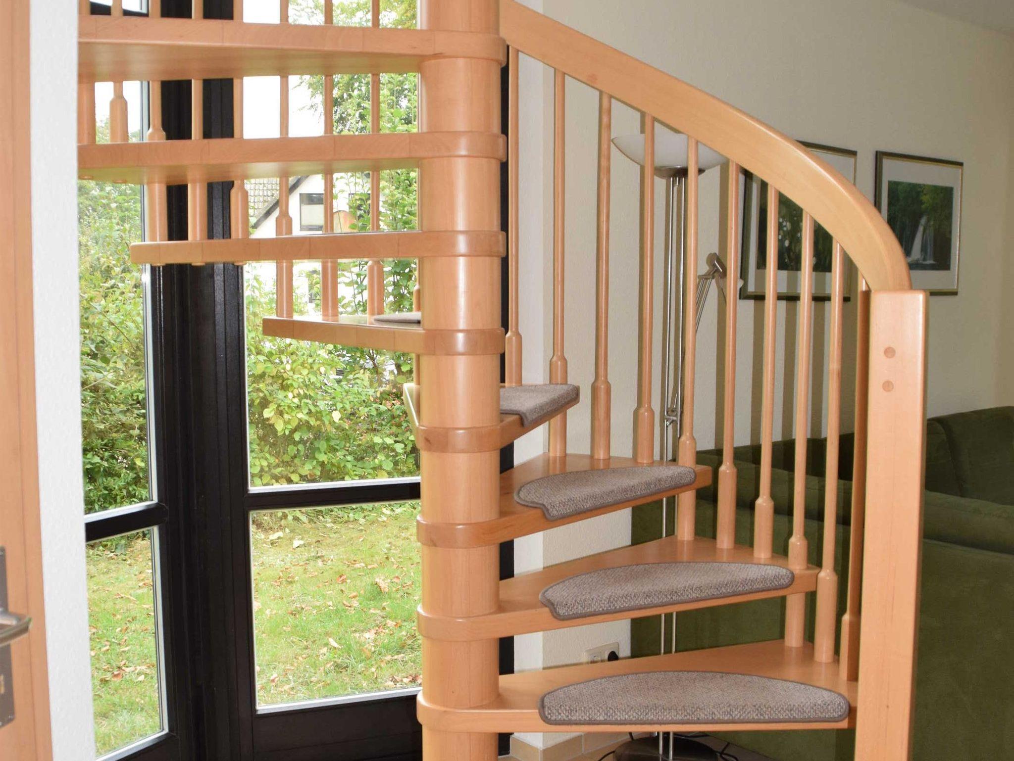 Eine stabile Wendeltreppe führt ins OG. Hier befindet sich ein SZ mit einem Doppelbett.