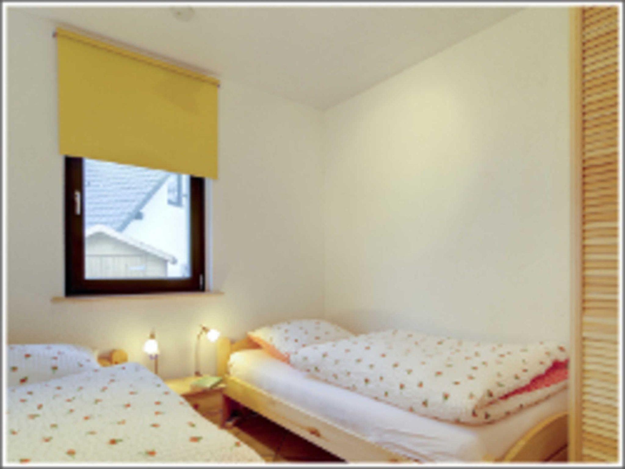 Das Schlafzimmer im Untergeschoß ist mit 2 Einzelbetten und Kleiderschrank ausgestattet.