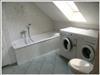 Beim Bad im Obergeschoß handelt es sich um ein Wannenbad, außerdem befinden sich dort natürlich ebenfalls ein Handwaschbecken und ein WC. Zusätzlich sind im oberen Bad die Waschmaschiene und der gesonderte Trockner integriert.