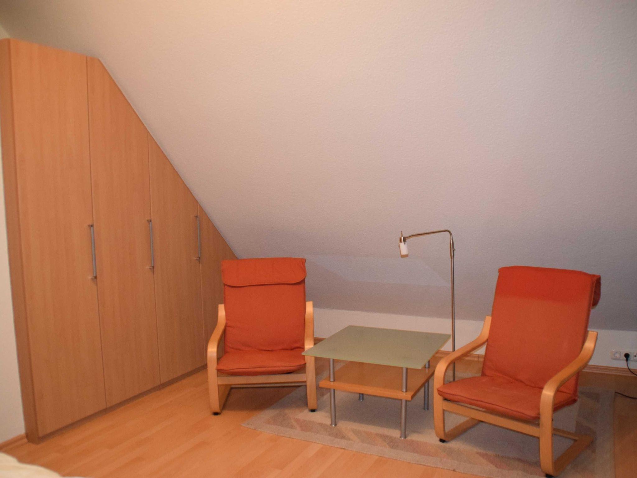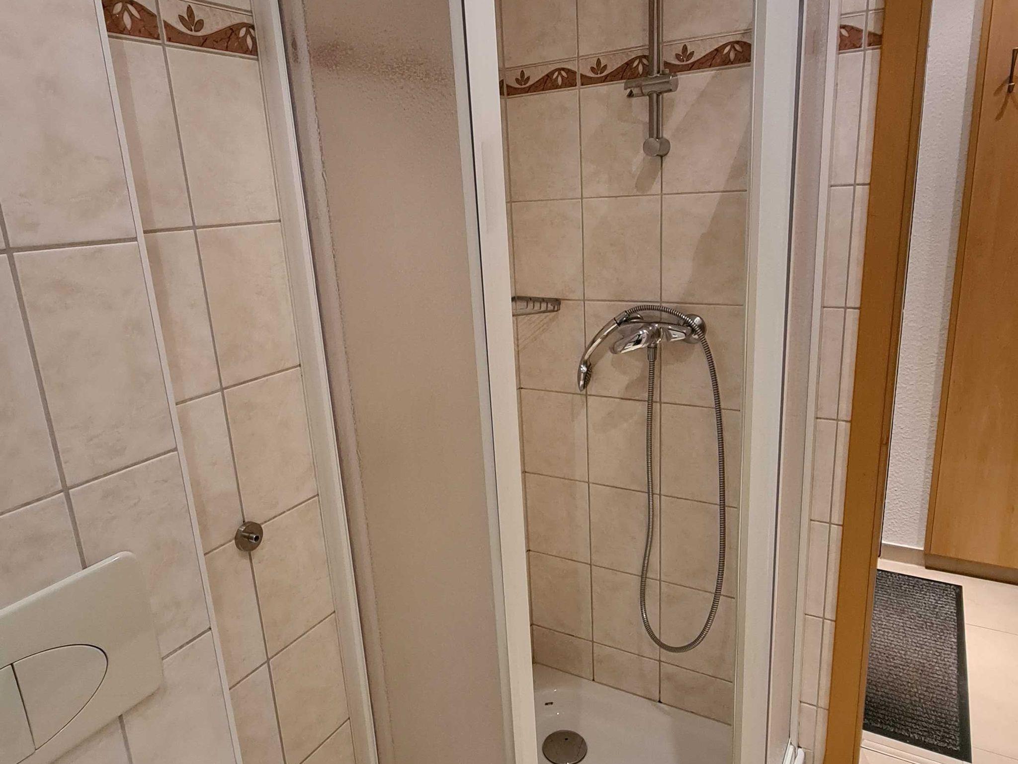 Im EG befindet sich ein Duschbad mit Sauna, ein SZ mit einem Doppelbett und die Küche mit Wohn -und