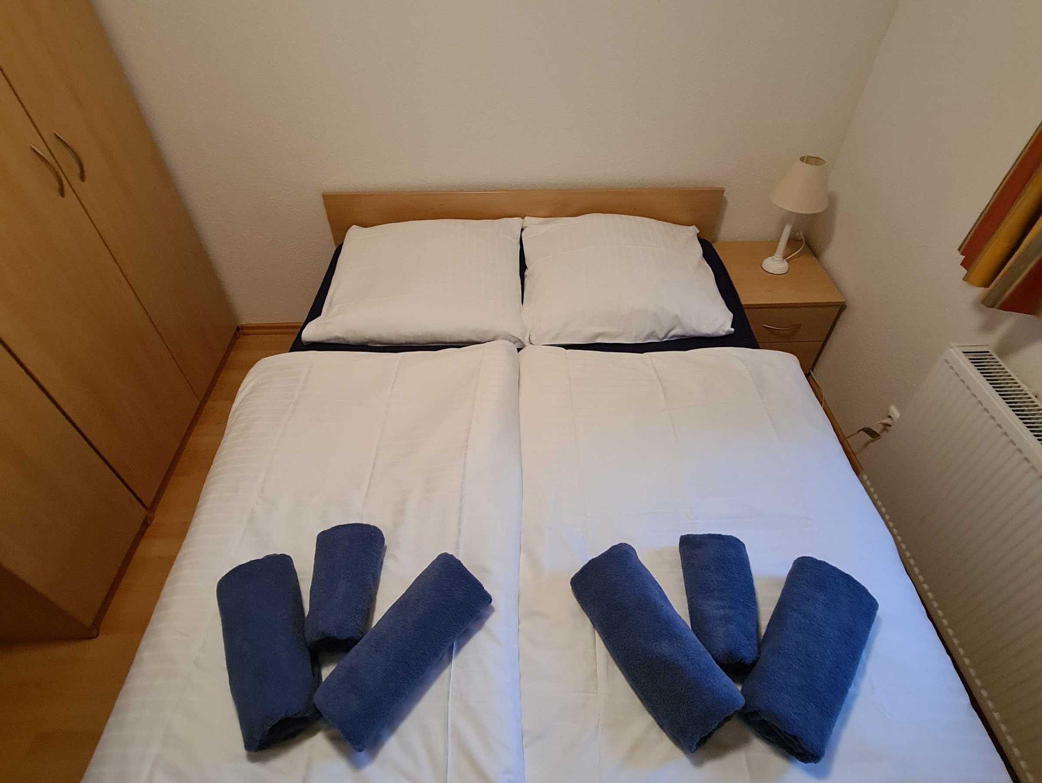 aufs Wasser. Nebenan ein SZ mit 2 Einzelbetten und ein Wannenbad mit Waschmaschine und Trockner.