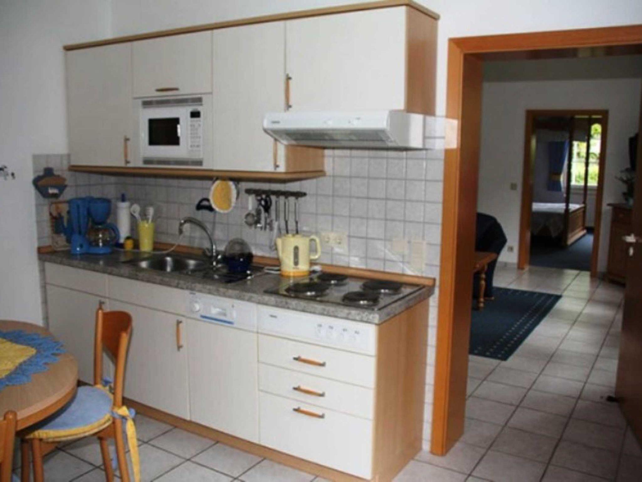 Das liebevoll eingerichtete Appartement 3 liegt im Erdgeschoss der Villa. Das Appartement verfügt über einen separaten Eingang und ist mit allem Komfort ausgestattet. Der Wohnraum ist mit viel Liebe und Geschmack eingerichtet, ein TV, ein Radio ,ein Telefon sowie kostenfreies WLAN gehören zur Ausstattung. Das Appartement verfügt über ein Doppelbett im Schlafraum und eine ausziehbare Couch im Wohnraum, die als Aufbettung für Kinder bis 16 Jahre genutzt werden kann. Die komplett eingerichtete Küche mit Essecke verfügt u.a. über eine Spülmaschine, einen Kühlschrank, eine Mikrowelle und eine Kaffeemaschine. Das Badezimmer ist mit Dusche und WC ausgestattet, Handtücher sind im Preis enthalten.