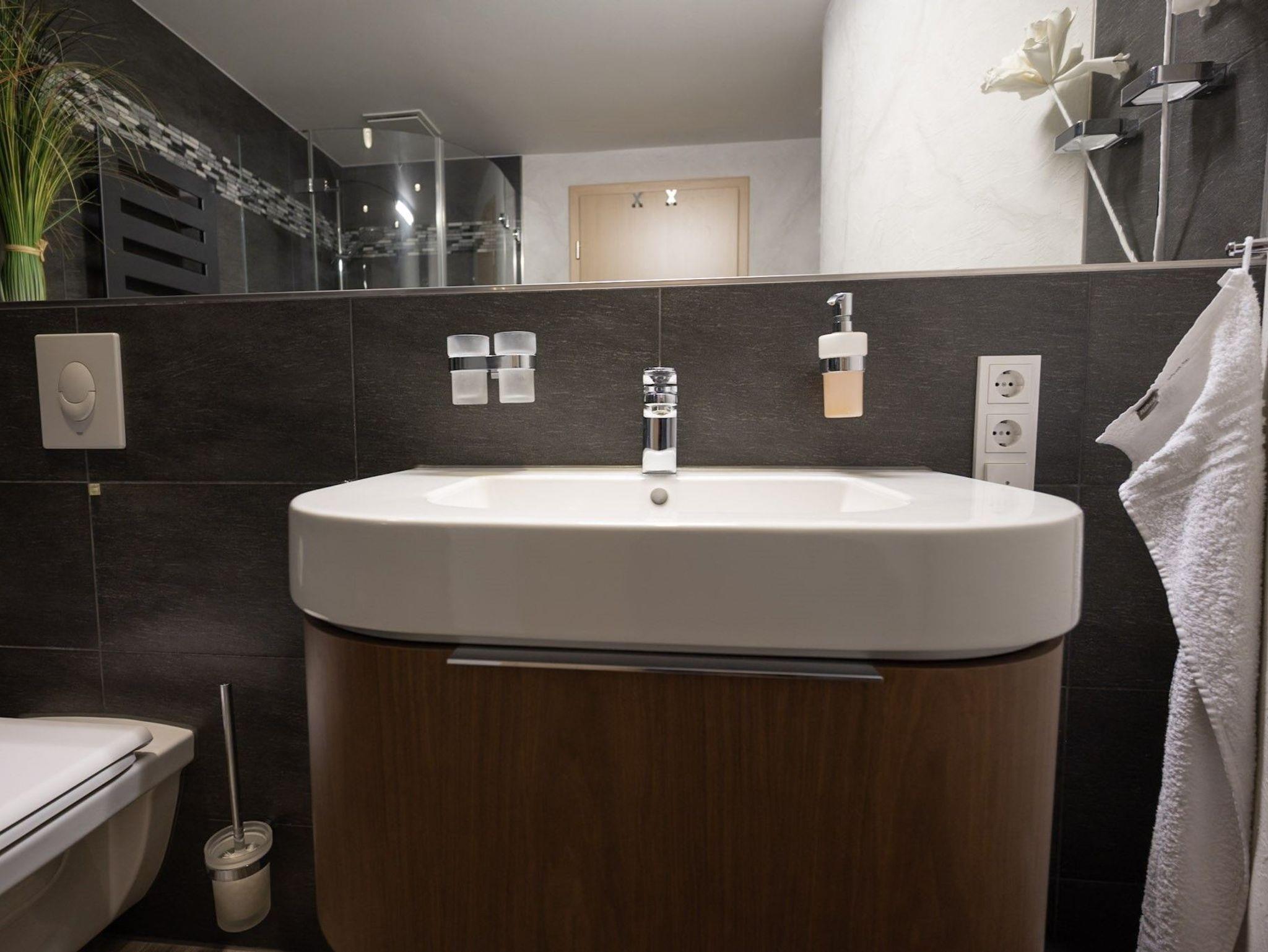 Das gemütliche Schlafzimmer ist Ihr persönlicher Rückzugsort. Es verfügt über ein komfortables Doppelbett und ein separates, modernes Bad, das mit hochwertigen Armaturen und einer entspannenden Dusche ausgestattet ist. Hier können Sie nach einem erlebnisreichen Tag am See wunderbar zur Ruhe kommen.