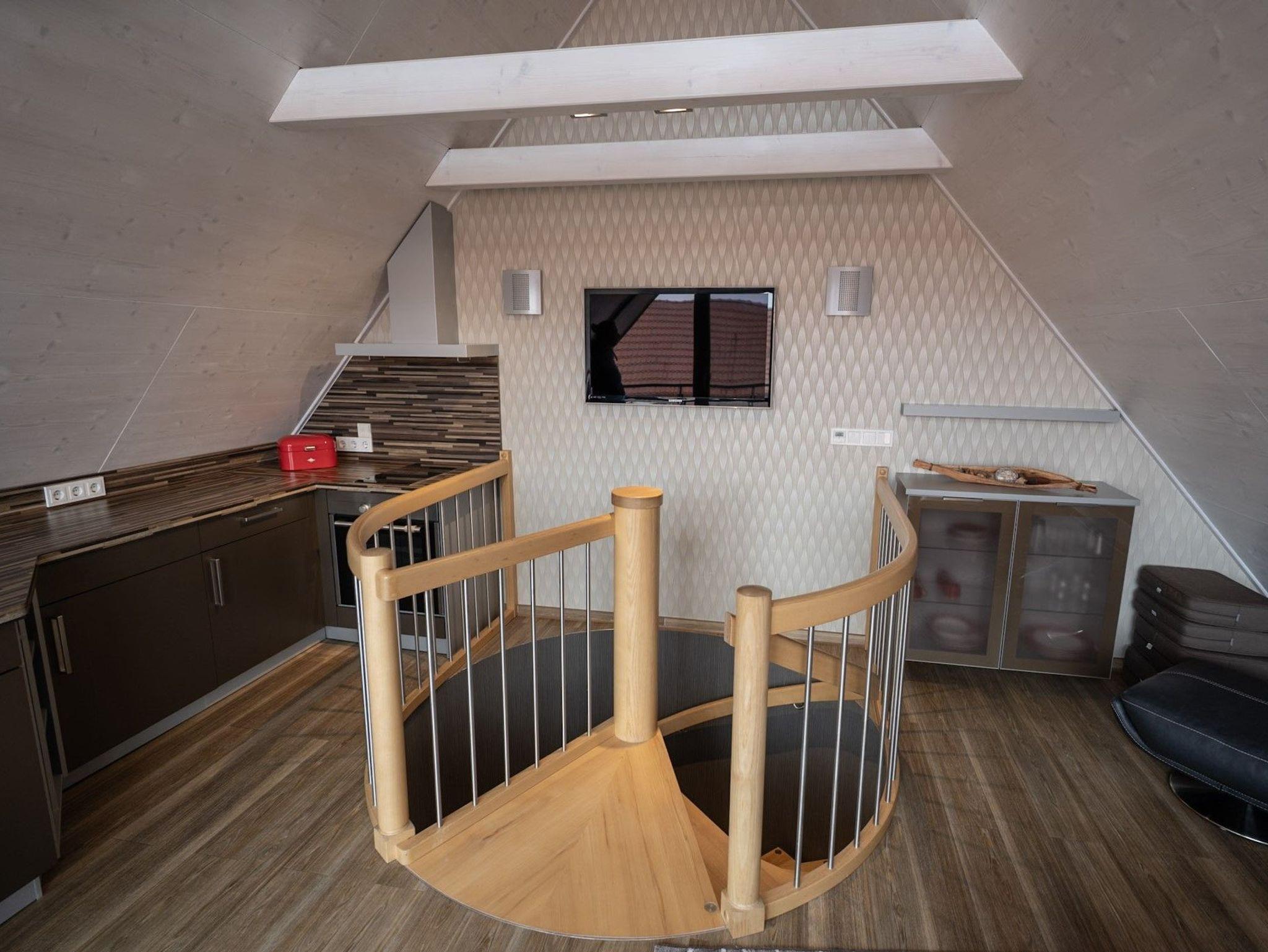 Über zwei Etagen, Ober- und Dachgeschoss - verbunden über eine Wendeltreppe, erstrecken sich die Appartements Burgturm und Hubbrücke. Je nach Belegung kann auch das gesamte Haus gemietet werden. Insgesamt finden bis zu 6 Personen Platz.