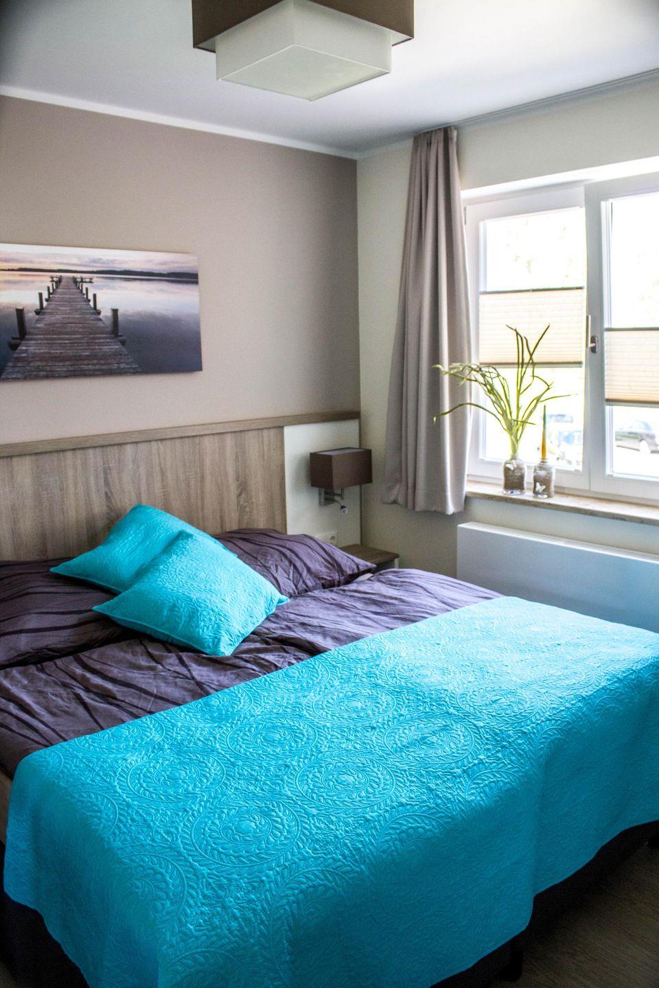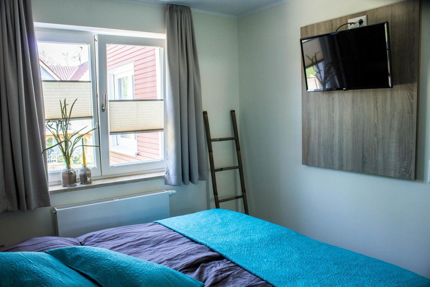 In der obersten Etage befindet sich ein zweites Bad mit Tageslicht und einer Badewanne. In nördlicher Richtung mit Blick auf das Hafendorf ist ein weiteres Schlafzimmer mit Boxspringbett (Liegefläche 1,80 m x 2,00 m) gelegen.
