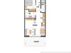 Die Wohnfläche von 56 m² teilt sich in einem Wohn-/Essbereich mit einer Küchenzeile, einem separaten Schlafzimmer und einem Duschbad auf.