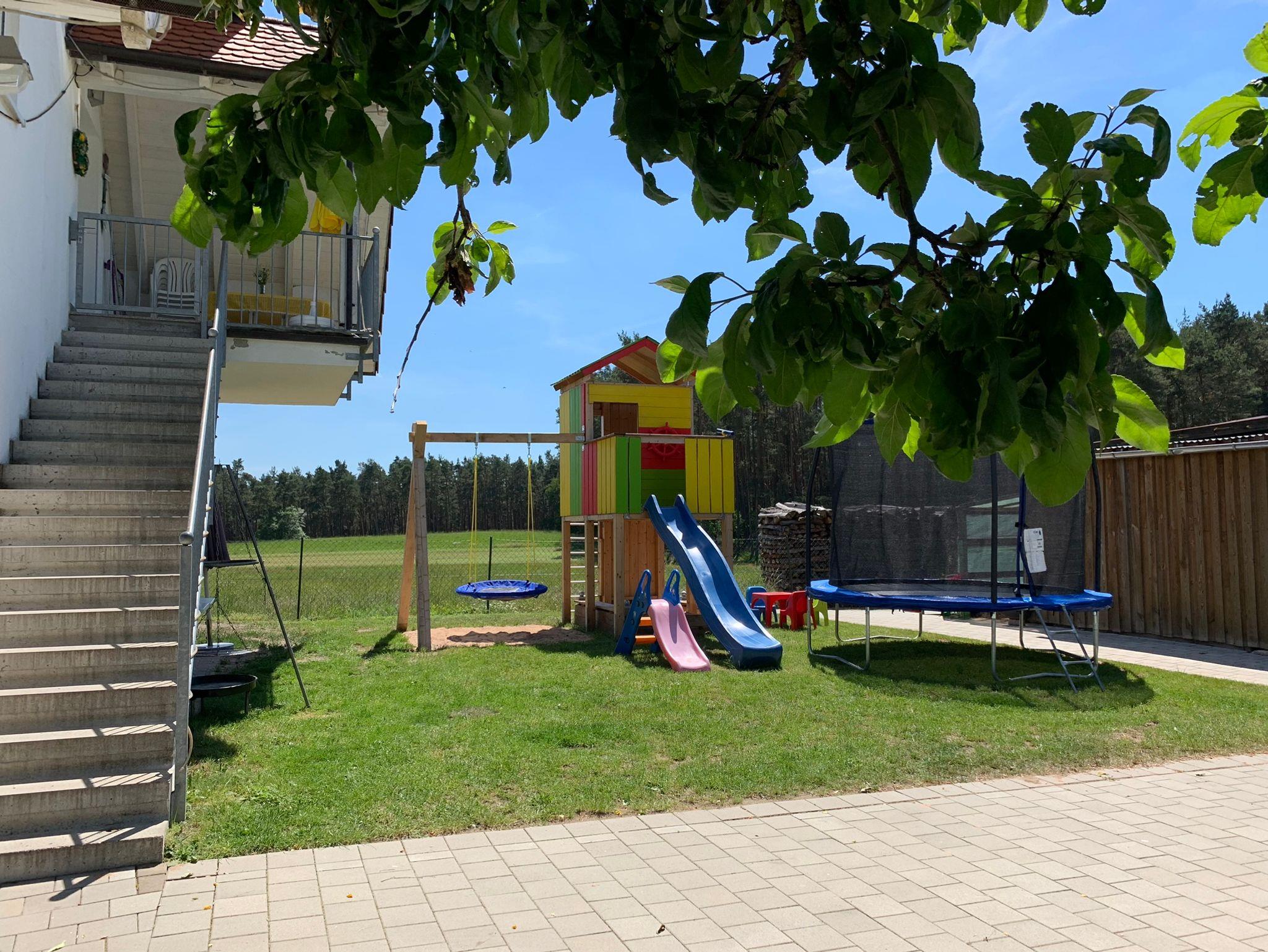 Ferienwohnung „Zur Eiche“ – Ihr Rückzugsort zum Wohlfühlen. Unsere großzügige Ferienwohnung „Zur Eiche“ bietet auf 85?m² ausreichend Platz für bis zu sechs Personen. Sie verfügt über zwei komfortable Doppelzimmer sowie ein gemütliches Zweibettzimmer – ideal für Familien oder kleine Gruppen. Die voll ausgestattete Wohnküche lässt keine Wünsche offen: Backofen, Kaffeemaschine, Wasserkocher, Mikrowelle, Toaster sowie ein großer Kühl-/Gefrierschrank stehen Ihnen zur Verfügung. Für Ihre Sicherheit sorgt ein Safe, für Unterhaltung SAT-TV und kostenfreies WLAN in der gesamten Wohnung. Das moderne, private Badezimmer ist mit Dusche, WC und Haartrockner sowie Waschmaschine ausgestattet – Handtücher und Bettwäsche sind selbstverständlich inklusive. Besonders einladend ist die überdachte Hochterrasse mit Blick ins Grüne – hier können Sie den Tag entspannt ausklingen lassen. Die Wohnung ist ein Nichtraucherwohnung. Zur gemeinschaftlichen Nutzung stehen Ihnen außerdem ein Grillplatz, ein Spielplatz mit Trampolin sowie sichere, abgeschlossene Unterstellmöglichkeiten für Fahrräder zur Verfügung – inklusive Ladestationen für E-Bikes.