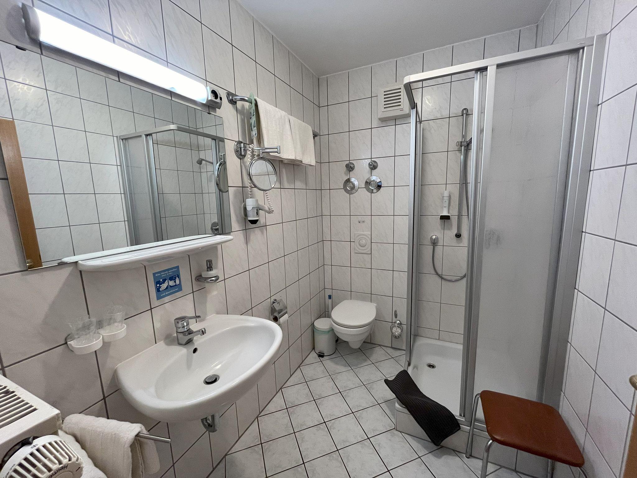 Dieses helle Komfort-Zimmer im 1. Obergeschoss bietet auf ca. 27?m² eine gemütliche Rückzugsmöglichkeit für erholsame Tage. Vom überdachten Südbalkon genießen Sie einen freien Blick auf den gepflegten Garten. Das private Badezimmer ist mit Dusche, WC und Haartrockner ausgestattet. Für Ihren Komfort stehen Ihnen ein Safe, SAT-TV, kostenfreies WLAN sowie ein Wasserkocher und ein Kühl-/Gefrierfach zur Verfügung. Das Zimmer ist allergikerfreundlich und ein reines Nichtraucherzimmer. Zur gemeinschaftlichen Nutzung stehen Grillplatz, Trampolin, Kinderspielplatz, Waschmaschine und Trockner sowie eine abschließbare Fahrradgarage mit E-Bike-Ladestationen bereit.