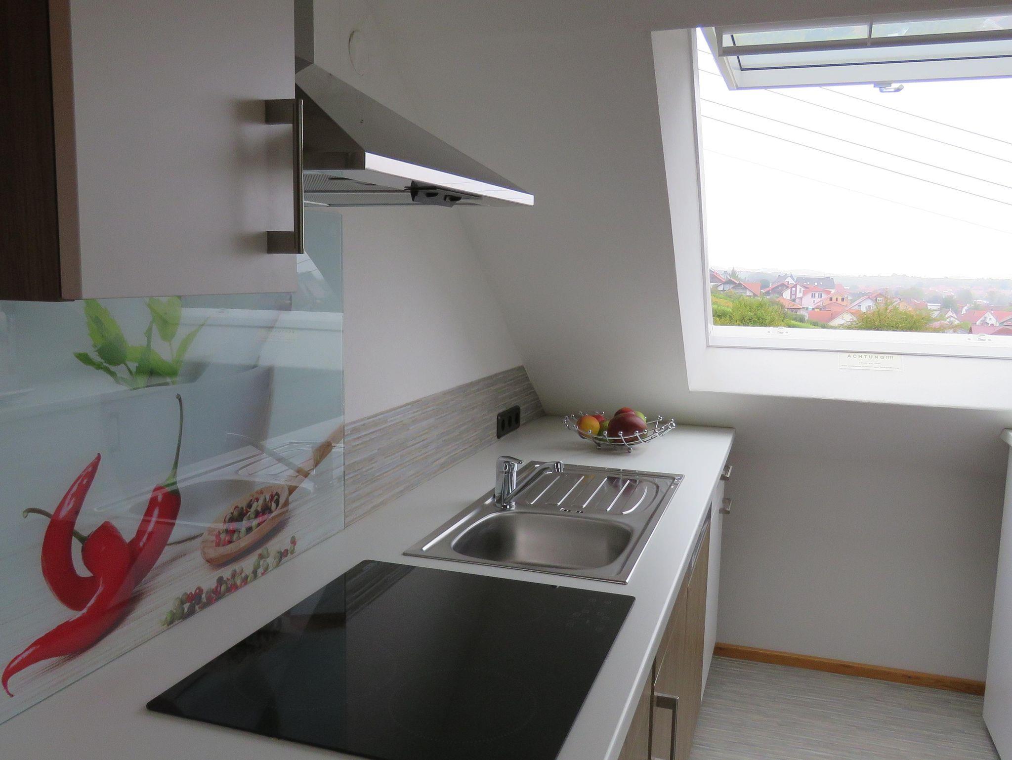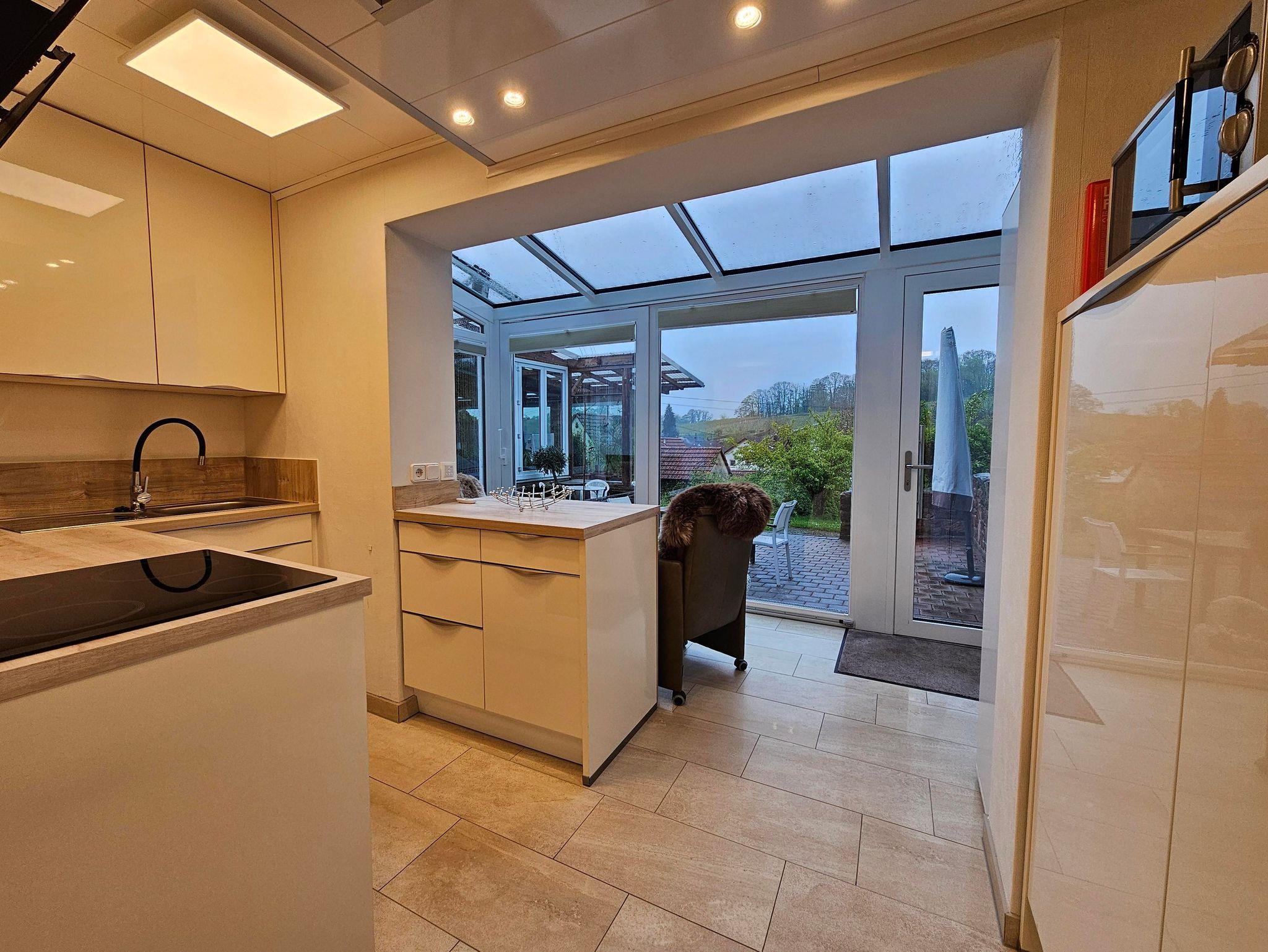 Die helle lichtdurchflutete Küche mit Spülmaschine und Backofen sowie allen wichtigen Gerätschaften wie : Kaffeevollautomat, Toaster, Mikro u.s.w. stehen Ihnen zur verfügung.