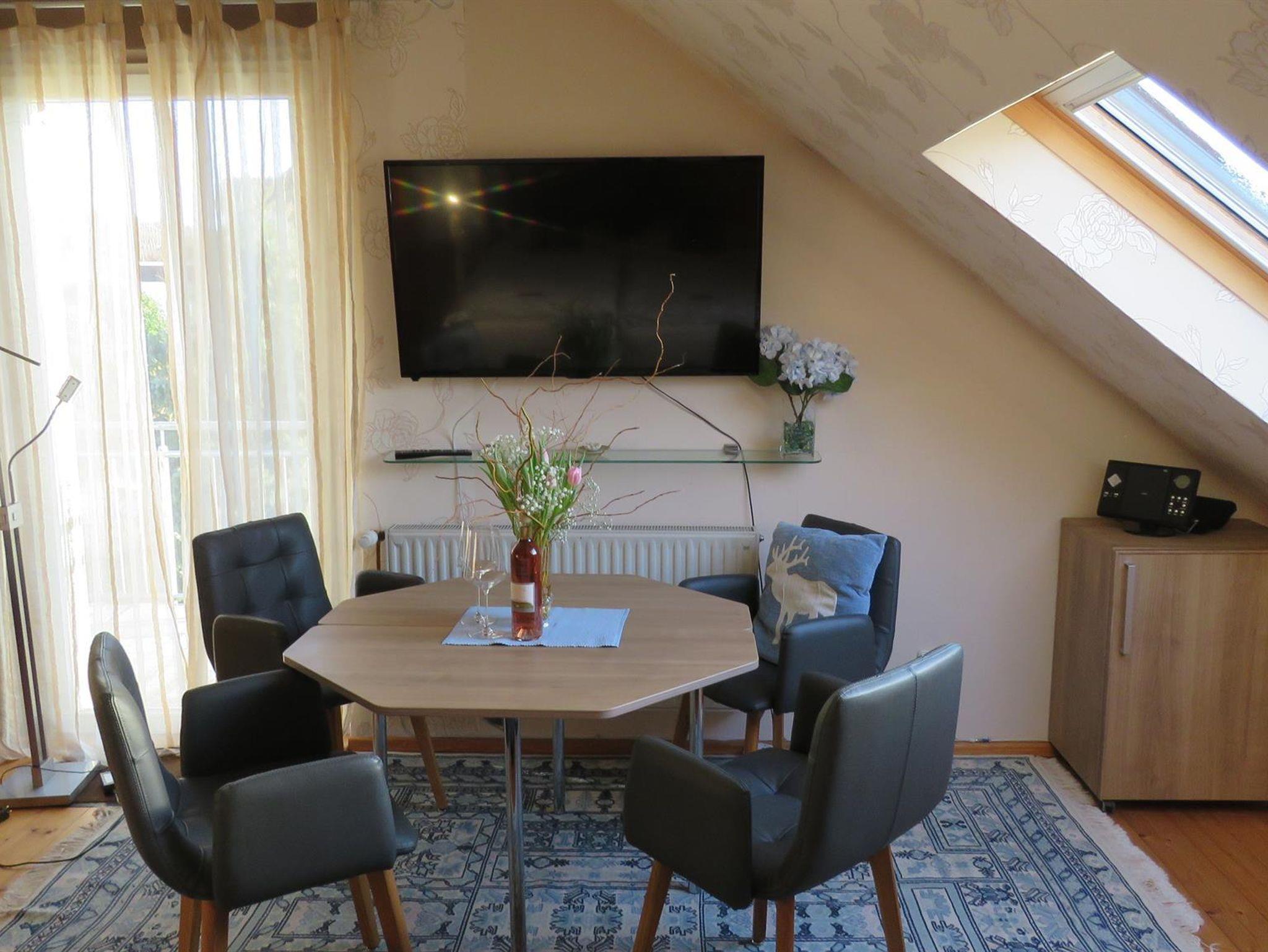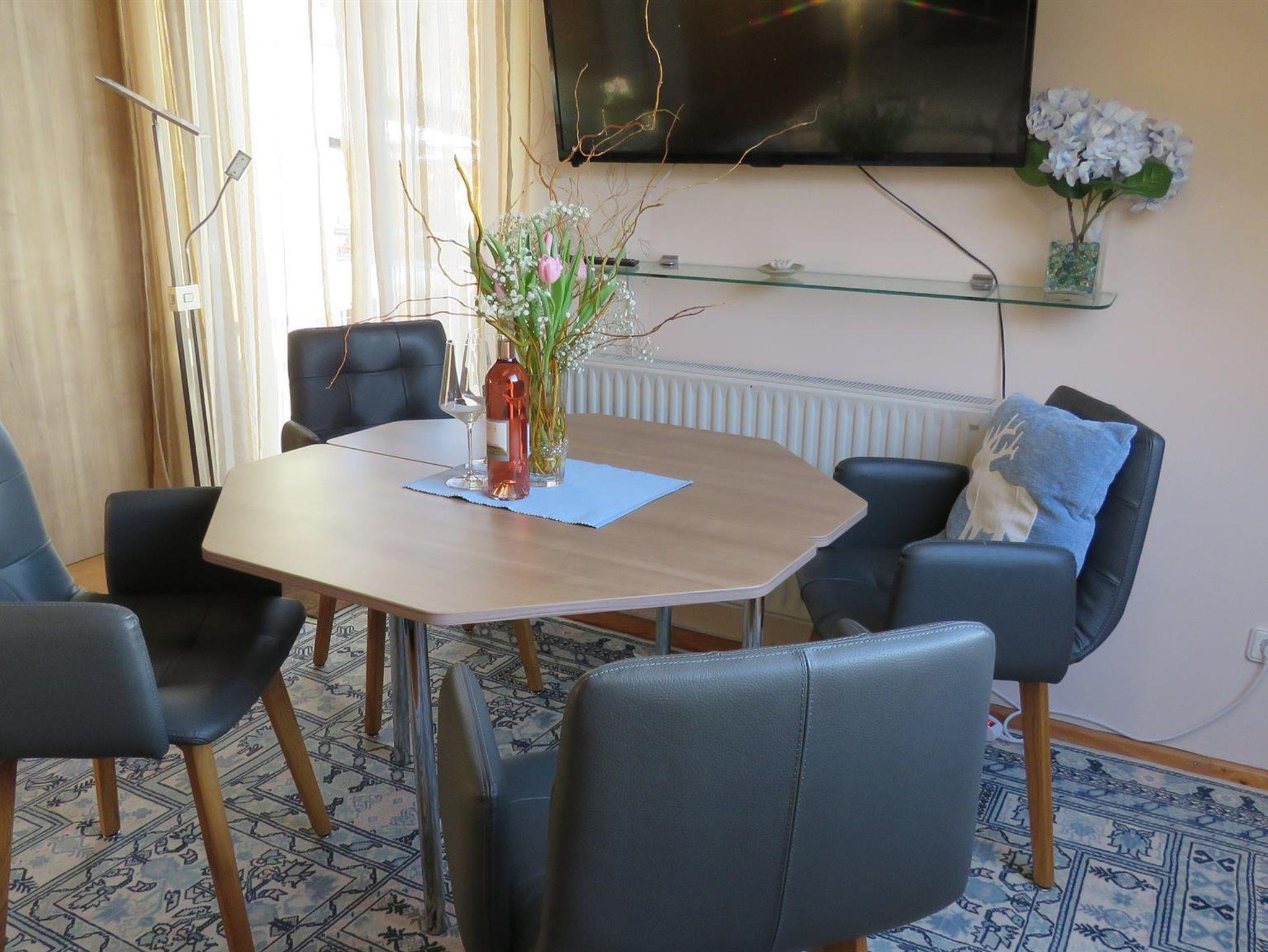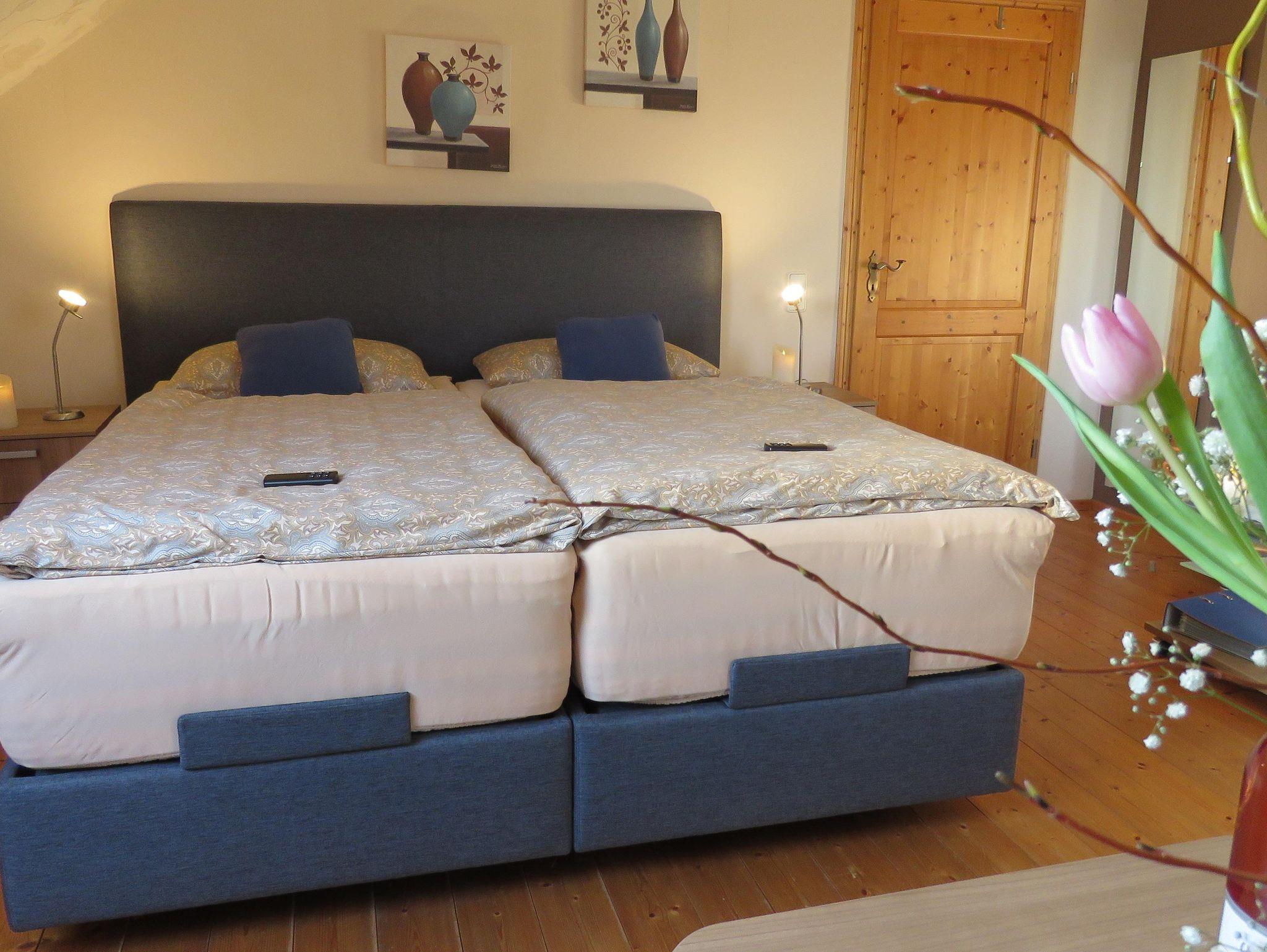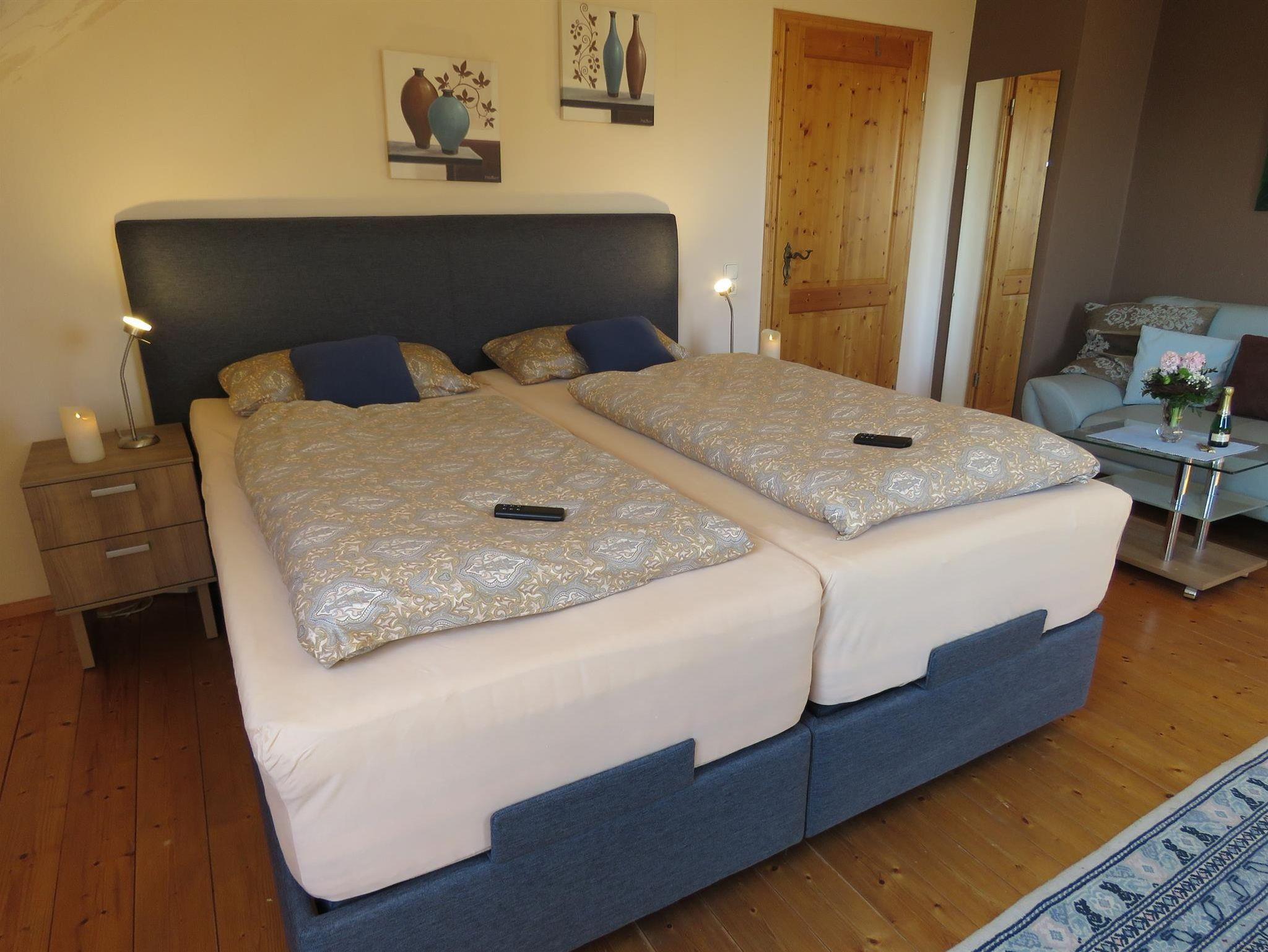Die Fewo Hortensie ist ausgetattet mit einer Eßecke für 2-4 Personen. Einer Sitzecke, und ein elektrisch verstellbares Boxspringbett in einer Komforthöhe von 65cm.