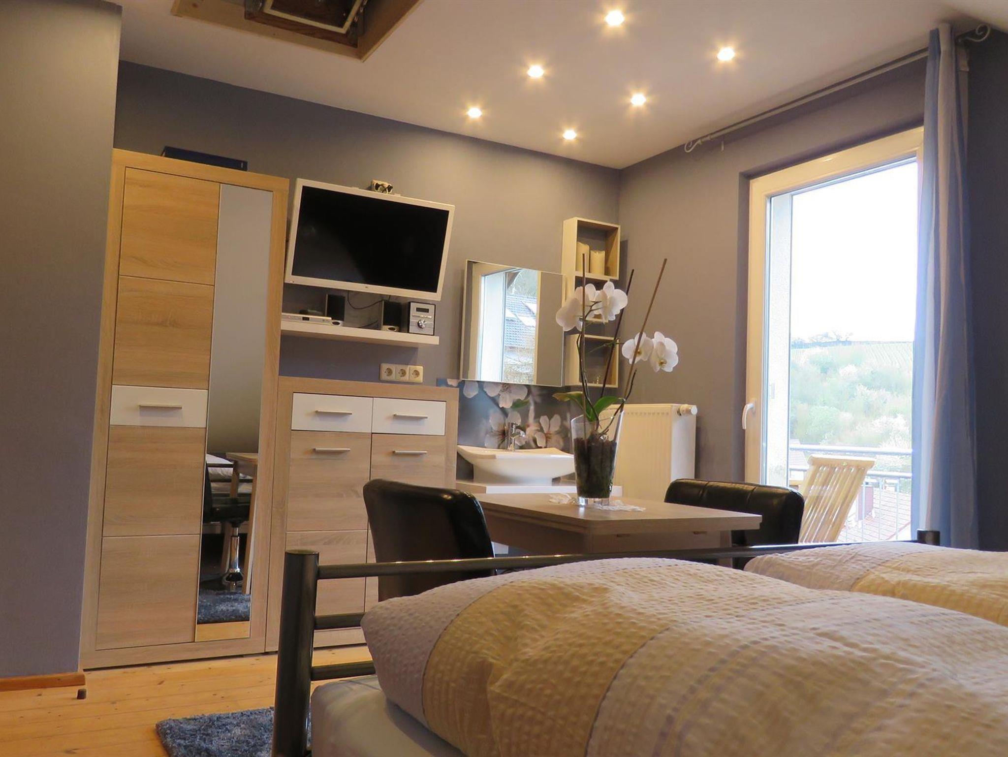 In der 3 Sterne Fewo Lilie genießen Sie auf Ihrem Balkon den Pfälzer Wein in der Abendsonne. Das beleuchtete Himmelbett ist mit elektrisch verstellbarem Lattenrost und einer 24 cm hohen Luxusmatratze ausgestattet. Die lichtdurchflutete Küche mit einem großes Fenster bietet ihnen mit Spülmaschine, Backofen und Sonstigem, alles was man für einen entspannten Urlaub braucht, welche Sie aber vermutlich nicht viel nutzen werden, da wir viele gastronomische Betriebe im Ort haben. Alle sind zu Fuß gut erreichbar.