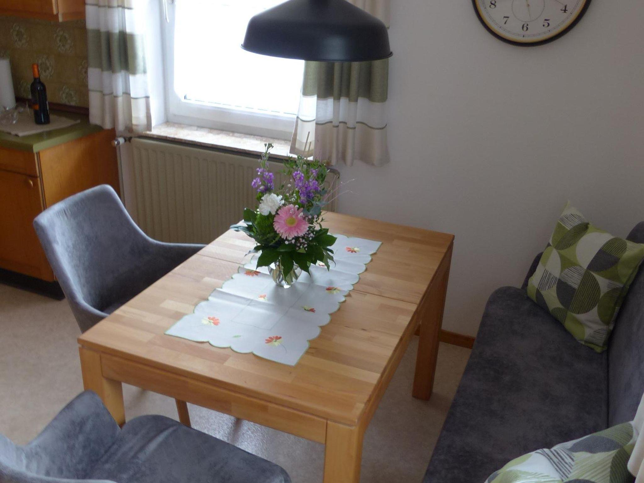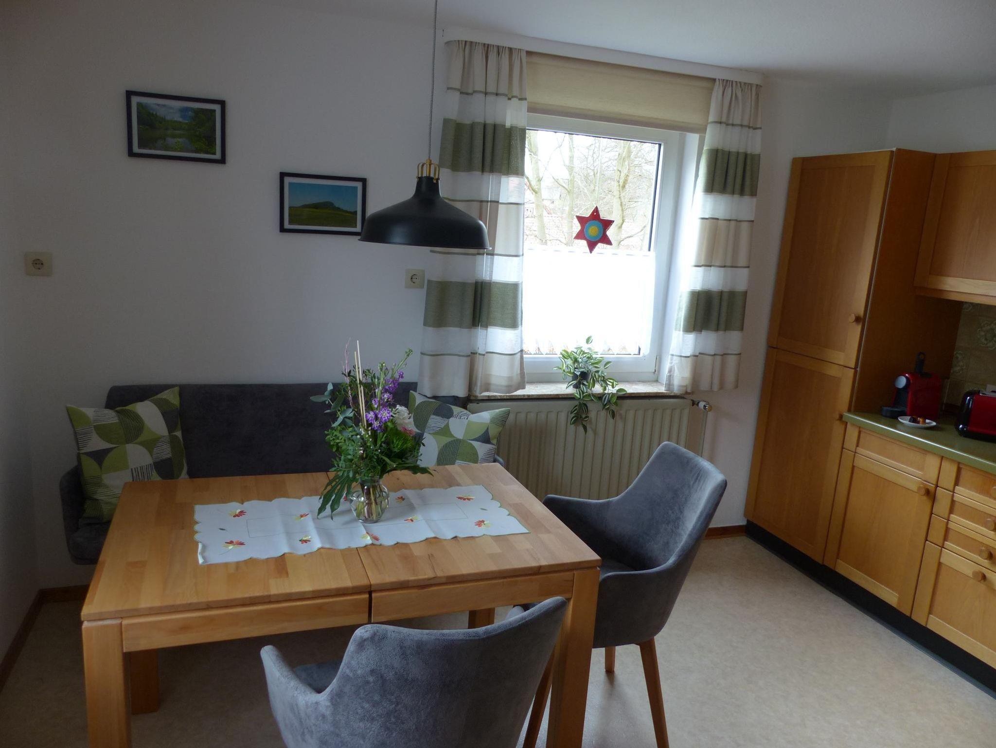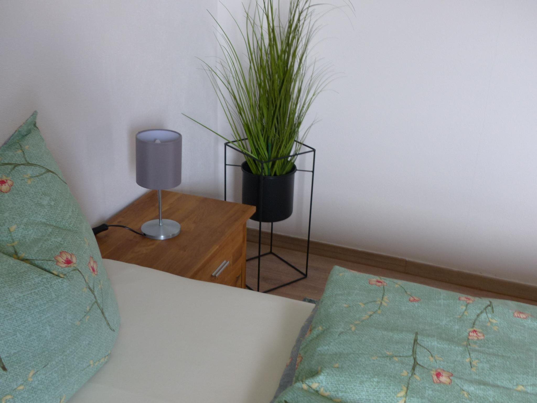 Die helle Ferienwohnung mit ca. 68 qm Grundfläche liegt im Erdgeschoss des Einfamilienhauses und ist insbesondere für ruhesuchende Erwachsene oder Paare mit einem Kleinkind geeignet (Kinderbett kann kostenlos zur Verfügung gestellt werden). Der großzügige Wohn-Essbereich mit Ecksofa und Relaxsessel laden zum Entspannen und Verweilen ein. Sat-TV, Stereoanlage, kostenloses WLAN und eine Auswahl an Spielen und Bücher lassen keine Langweile aufkommen. Die Küche ist mit einem E-Herd mit Backofen, Kühlschrank, Toaster, und einer Nespresso Kaffeemaschine gut ausgestattet. Die Dusche/WC liegen auf der gleicher Ebene und das Doppelzimmer mit einem Doppelbett mit hochwertigen Matratzen sorgen für einen erholsamen Schlaf. Ein 2. Schlafzimmer mit Doppelbett kann auf Anfrage im Obergeschoss dazu gebucht werden. Gesicherte Abstellmöglichkeit für E-Bikes und Lademöglichkeit sind im ebenerdig, zugänglichen Keller vorhanden. Das Rauchen in der FeWo ist nicht gestattet, Haustiere sind nicht erlaubt.