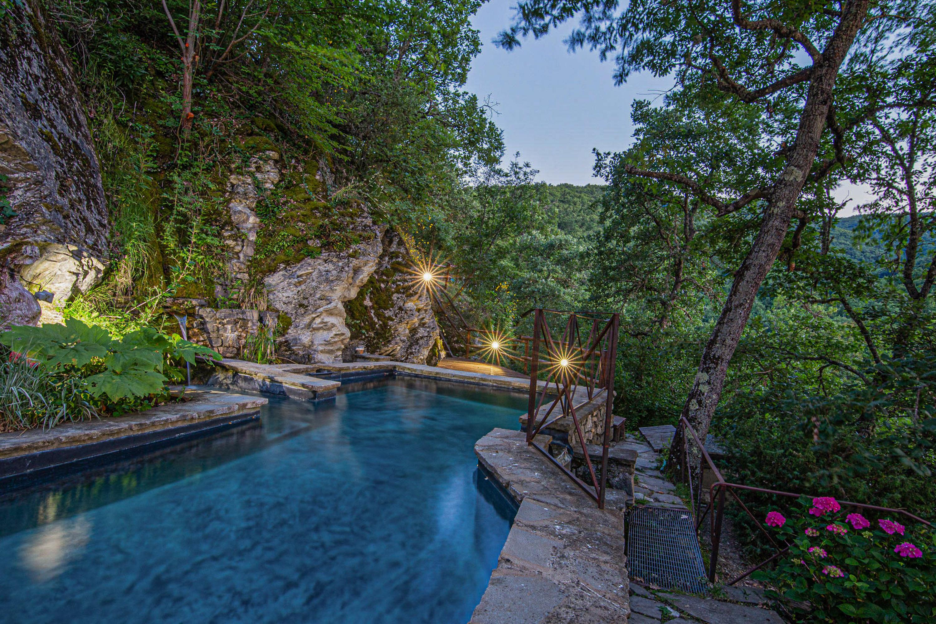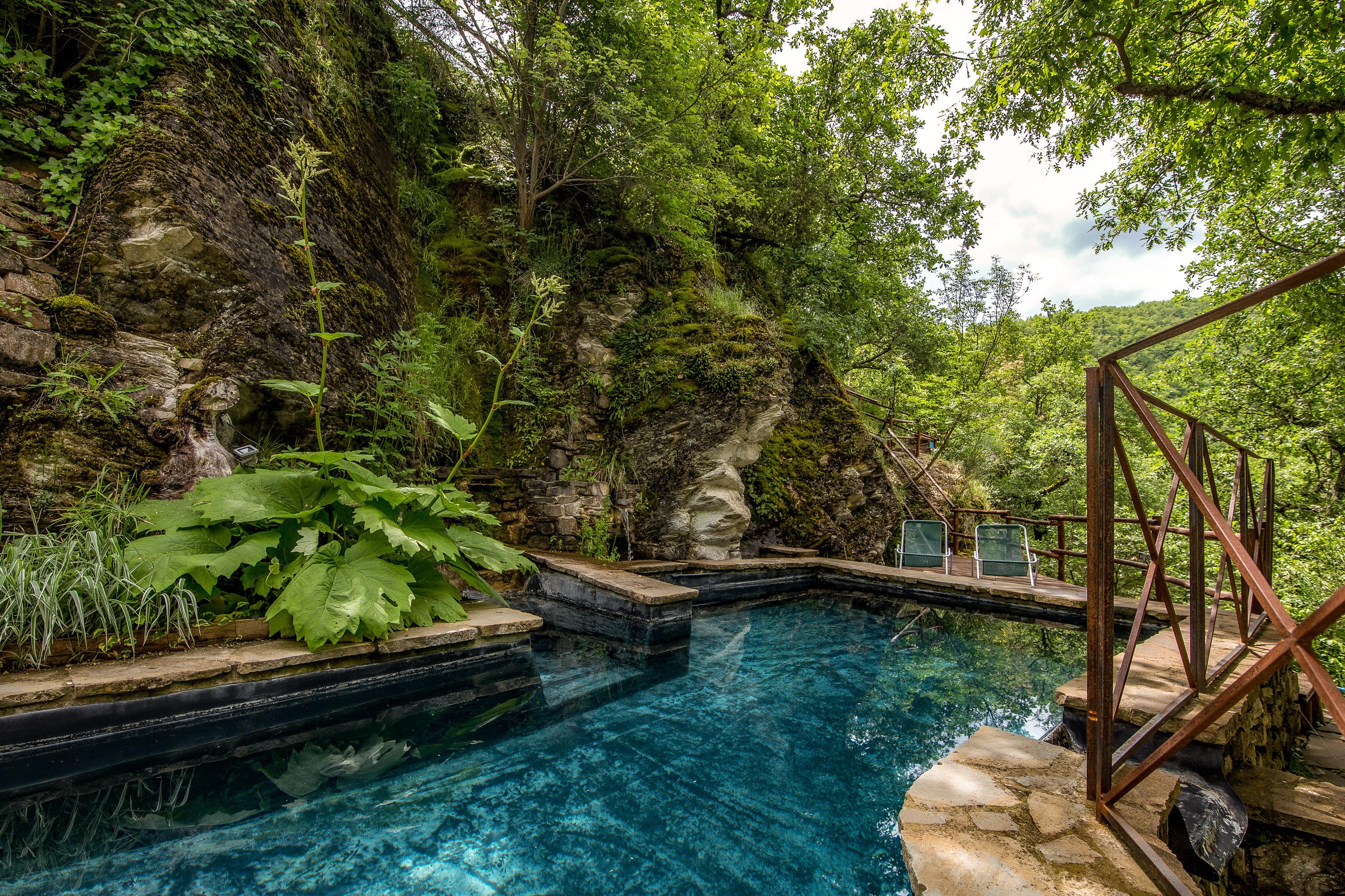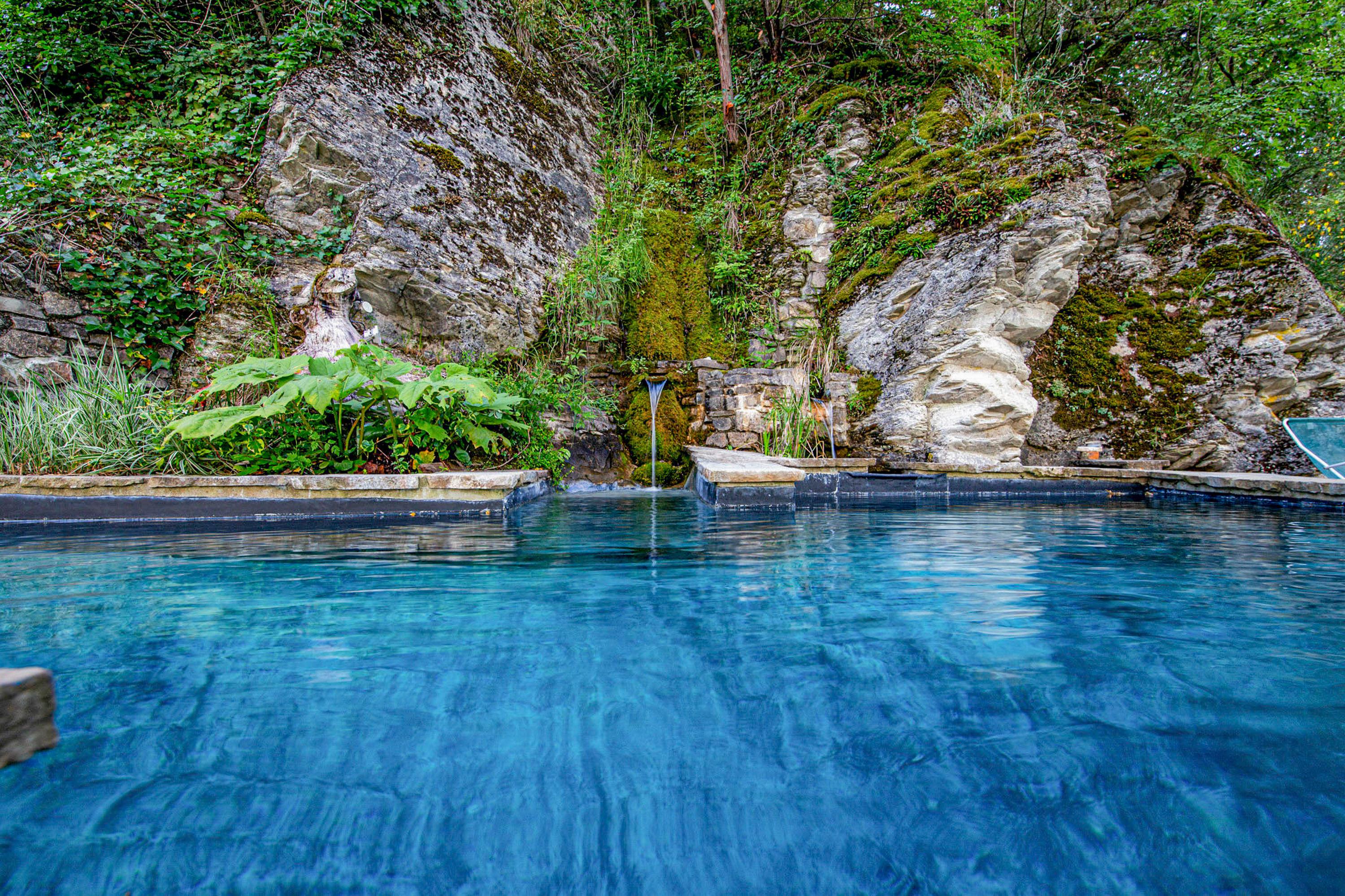 Der traumhaft schöne Garten mit Naturpool, Jacuzzi, einem einzigartigen Pizzaofen, Grill, Pergola mit Essbereich und Kinderspielplatz ist sehr herzlich gestaltet. Hier bleiben keine Wünsche offen! Liegestühle und Sonnenschirme auf hölzernen Liegeterrassen befinden sich jeweils am Kopf- und Fußende des Pools. Seit Juni 2019 steht Ihnen auch ein Jacuzzi für bis zu sechs Personen zur Verfügung. Dank des 1000-jährigen Wachturms hat eine Terrasse Sonne, während die andere im Schatten liegt. Der Pool hat einen Überlauf mit Wasserkaskade, die ideal zur Nacken- und Rückenmassage ist. Architektur trifft hier auf antikes Zeitalter. Der Pool befindet sich im hinteren Teil des Hauses und bietet Ihnen reizvolle Plätze zum Entspannen. Er ist bewusst in unregelmäßiger Form mit einer Tiefe von 60-130 cm gestaltet, um sich der Umgebung anzupassen.