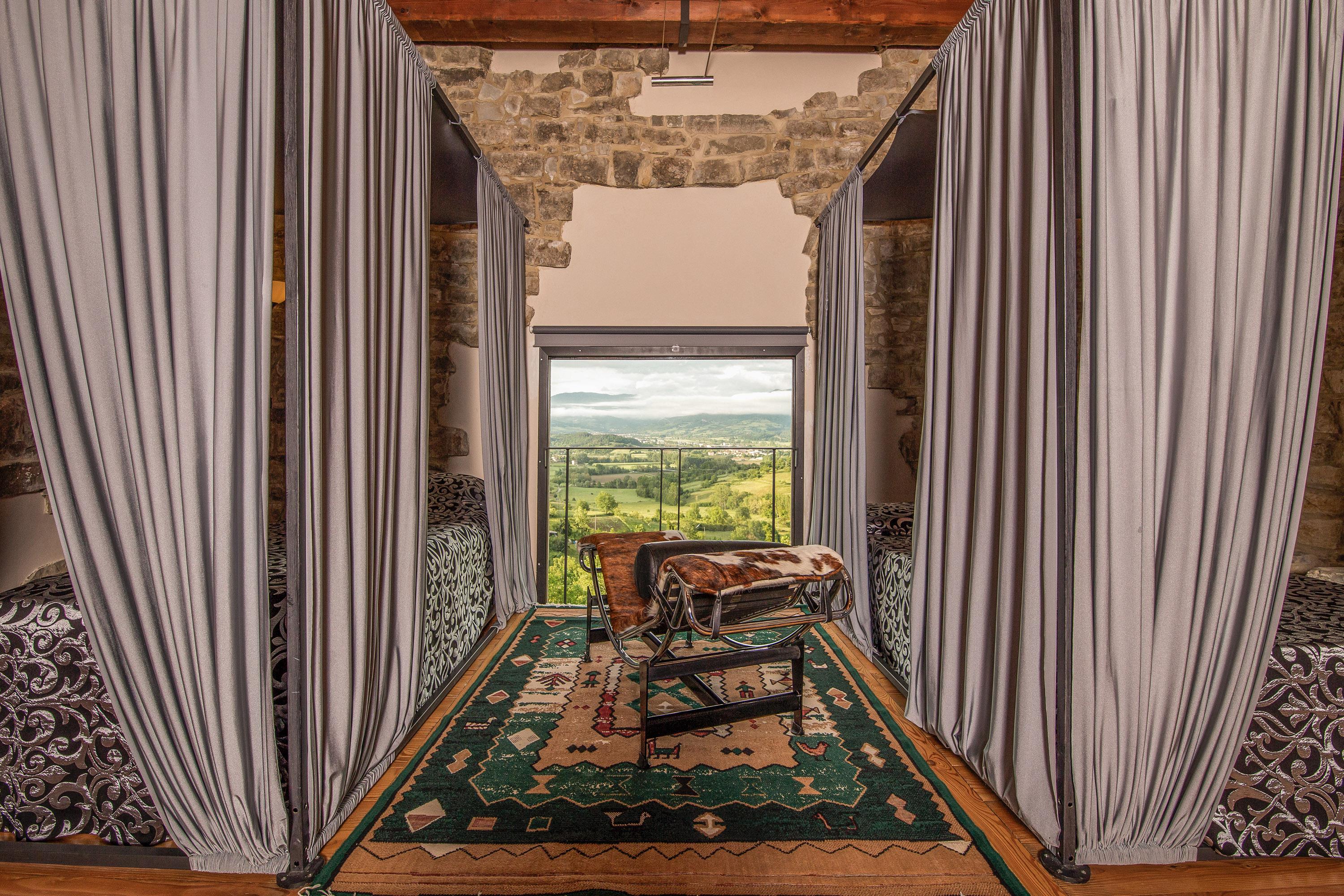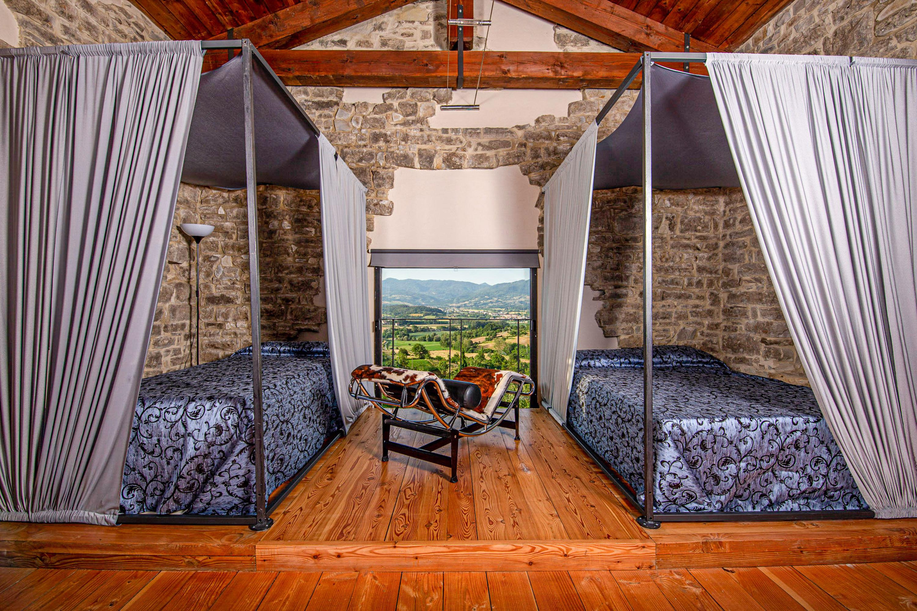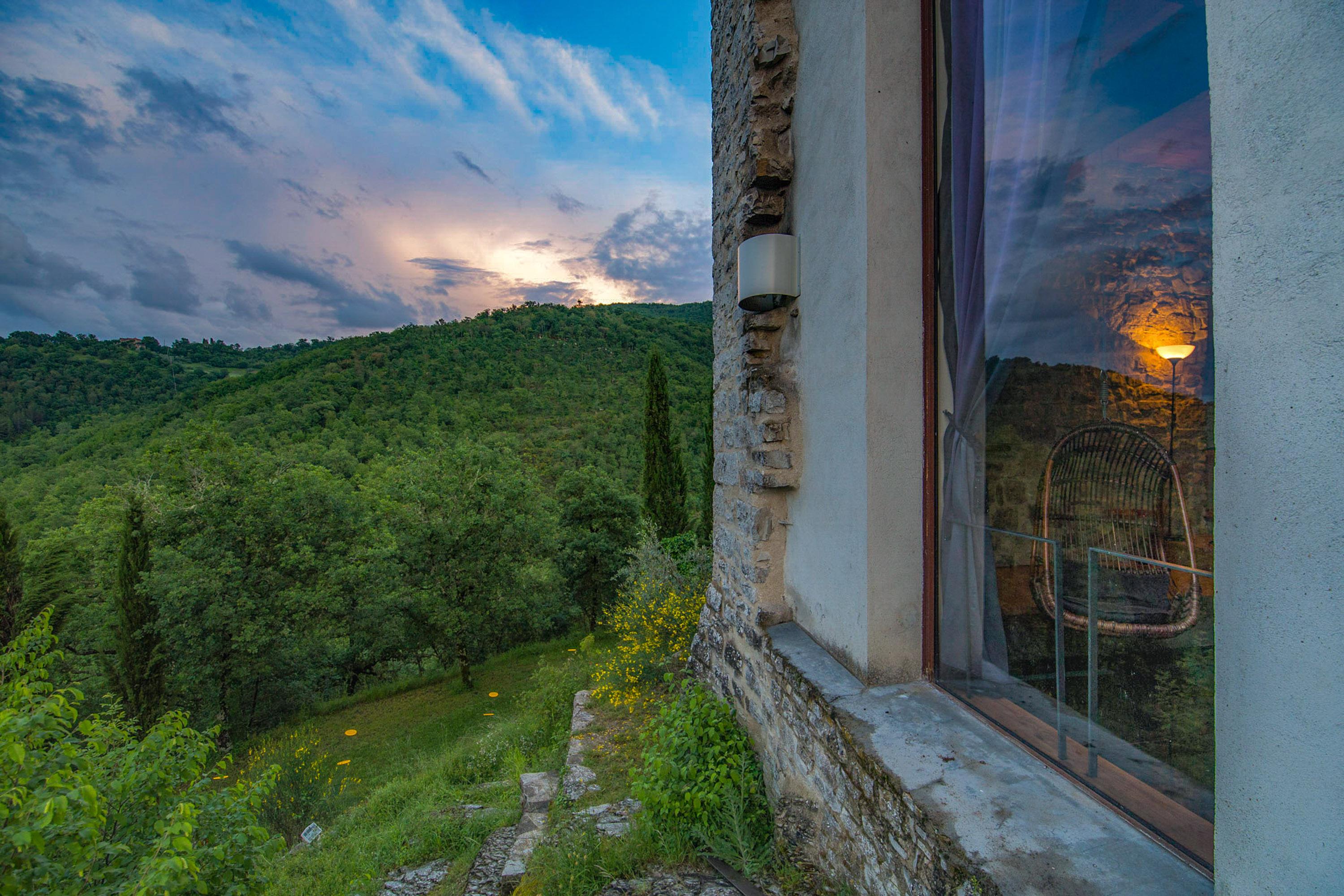 Erleben Sie einen exklusiven Toskana-Urlaub in absoluter Alleinlage im bezaubernden Anwesen, das harmonisch eine 1000-jährige authentische Bausubstanz und moderne Architektur vereint. Rund um das historische Domizil befinden sich zahlreiche Plätze zum Verweilen und Entspannen in vollkommener Privatsphäre. Der private Pool wird aus einer eigenen Quelle gespeist, was dem gesamten Anwesen einen einzigartigen Charme verleiht. Der Verwalter, ein bekannter Architekt aus Bibbiena, hat hier seinen privaten Traum verwirklicht. Das Domizil ist im Loft-Stil gestaltet und bietet 160 Quadratmeter Wohnfläche auf zwei Etagen, mit drei Schlafzimmern, zwei Standard-Duschbädern, einem Wohnraum mit Panoramaaussicht ins Tal und einer großen Küche mit Kamin für gemeinschaftliches Beisammensein.