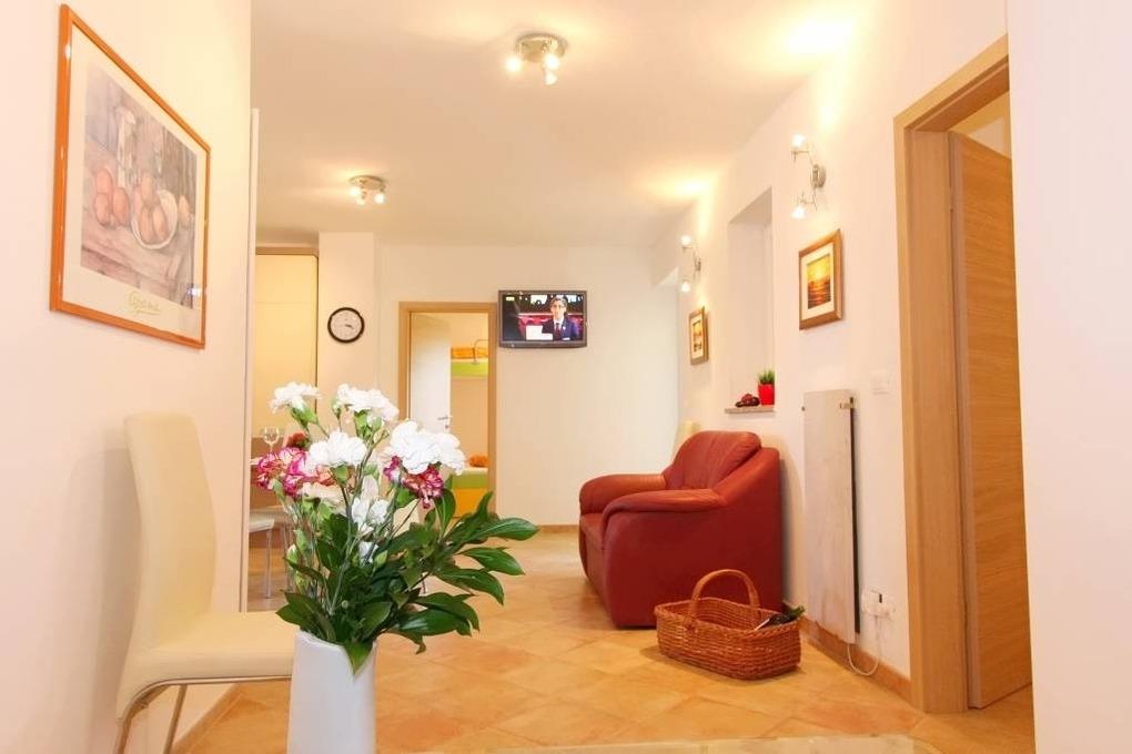 Die im Erdgeschoß gelegene Ferienwohnung bewohnen Sie mit bis zu 5 Personen. Der Standort in einer gesellschaftlich beliebten Wohnlage von Porec wird Sie begeistern.