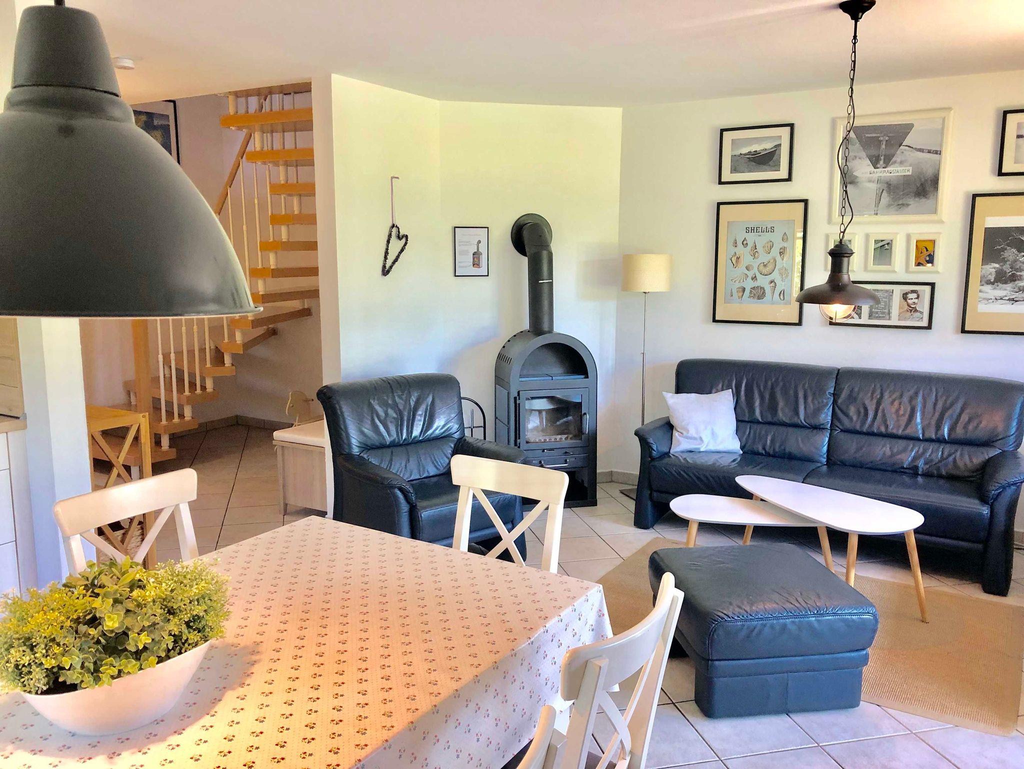 Auf 104 qm ist eine kleine Wohlfühloase entstanden, in der bis zu 8 Personen den Alltag hinter sich lassen können. Nach einem langen Tag mit unzähligen Impressionen der Insel können Sie im großen Wohnzimmer in unserer gemütlichen Sitzgruppe bei einem Roman aus unserer kleinen Bibliothek oder einem guten Film entspannen (Smart-TV vorhanden). Selbstverständlich verfügt das Ferienhaus über Internet (WLAN). Im Winter lassen Sie doch den Abend bei einem Glas Wein am Kamin ausklingen oder relaxen Sie in unserer Sauna. Wenn Sie gerne kochen, wird dies in unserer komplett ausgestatteten Küche zum Kinderspiel. Von Ceranherd bis zur Kaffeemaschine ist alles vorhanden, um im Essbereich des Wohnzimmers ein leckeres Frühstück, Mittag- oder Abendessen zu servieren und zu genießen.