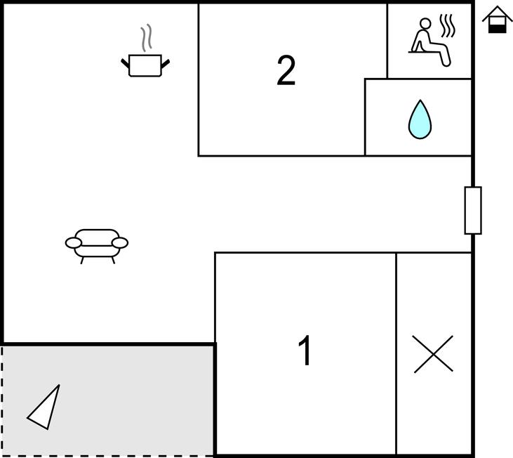 Der er plads til 4 personer i huset, som er indrettet med 2 soveværelser. Gulv til loft-vinduerne giver jer en vidunderlig udsigt over det fri. Tilbring hyggelige timer i sofaen efter en aktiv dag i naturen, eller varm jer i saunaen.