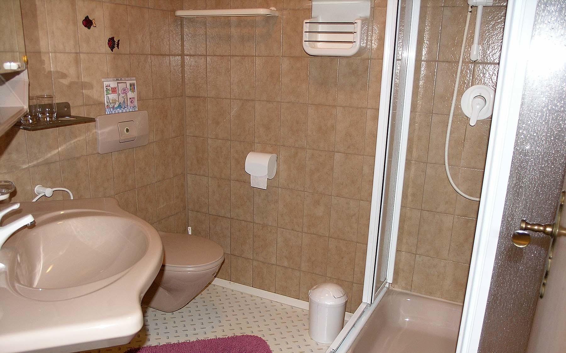 2 Bäder mit Dusche, WC und Waschbecken, sowie ein separates WC.
