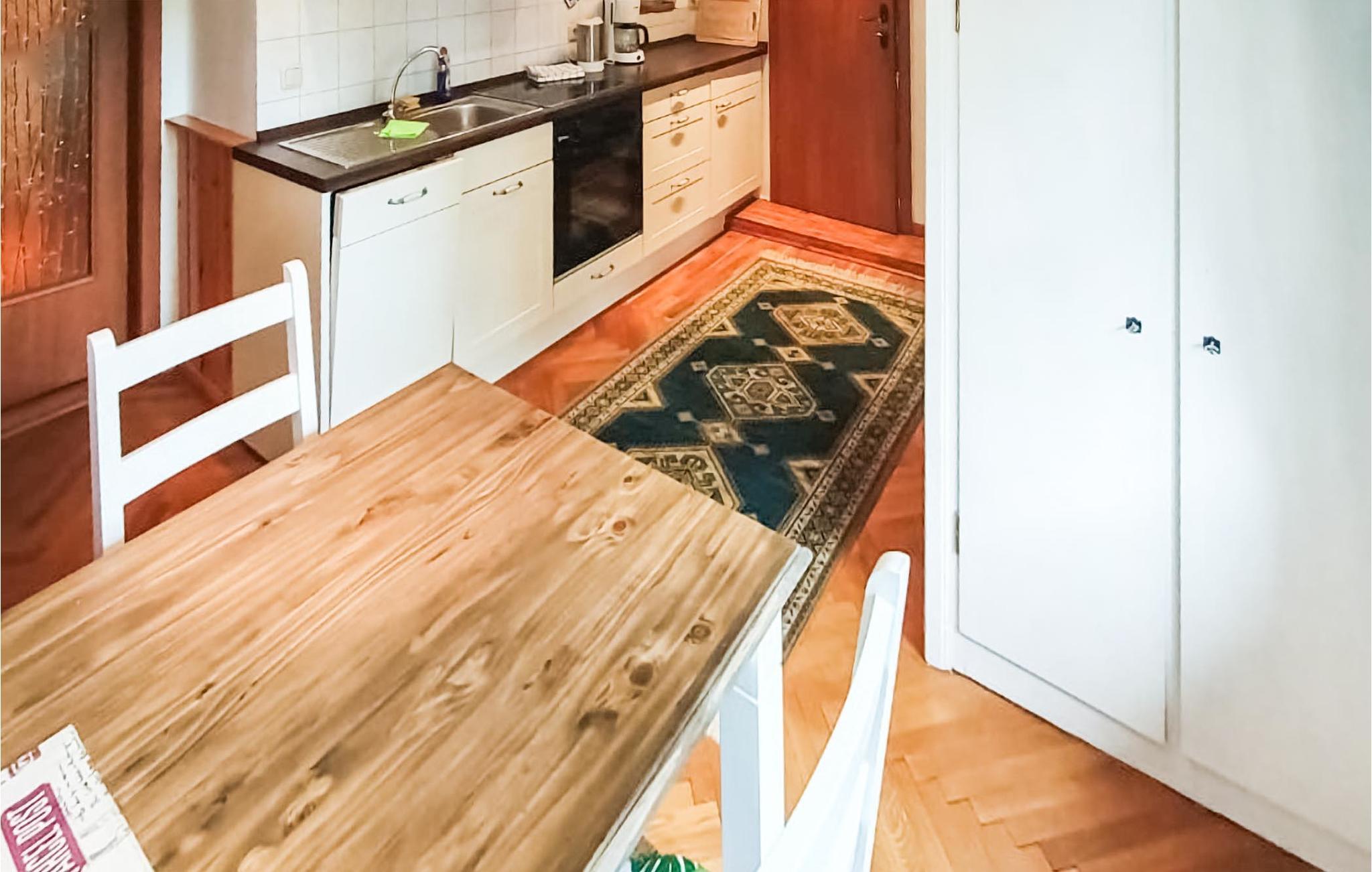 Med bedste beliggenhed i Osteseebad Prerow, nær stranden og samtidig centralt beliggende, ligger denne ferielejlighed på første sal i et hus under stråtag. Ikke mindst pga. en stor legeplads, der ligger få meter fra huset, er det perfekt til en familie med børn, blot otte minutters spadseretur til nærmeste strand, med lyst sand og de karakteristiske rødhvide strandkurve, som kan lejes til en pause i skyggen. Eller spring på cyklen og kør gennem Darsswald til den dejlige Weststrand. I Prerow by kan I leje vandcykler og spille tennis, her ligger både en cykeludlejning og et varehus lige i nærheden. En original kopi af en Mississippi hjuldamper indbyder til en udsædvanlig udflugt på vandet, og på den 395 meter lange bro ud i vandet, kan I rigtig nyde den friske salte havluft. Tag en tur til Zingst (10 km), der ud over de charmerende kaptajnshuse, havnen og broen også kan byde på Experimentarium, svømmehal, minigolfbane og mulighed for at ride på pony. Tag også en afstikker til Ahrenshopp, en by fuld af kunst og kunstnere (17 km), hvor der er mange gallerier og udstillinger med både moderne og klassisk kunst.